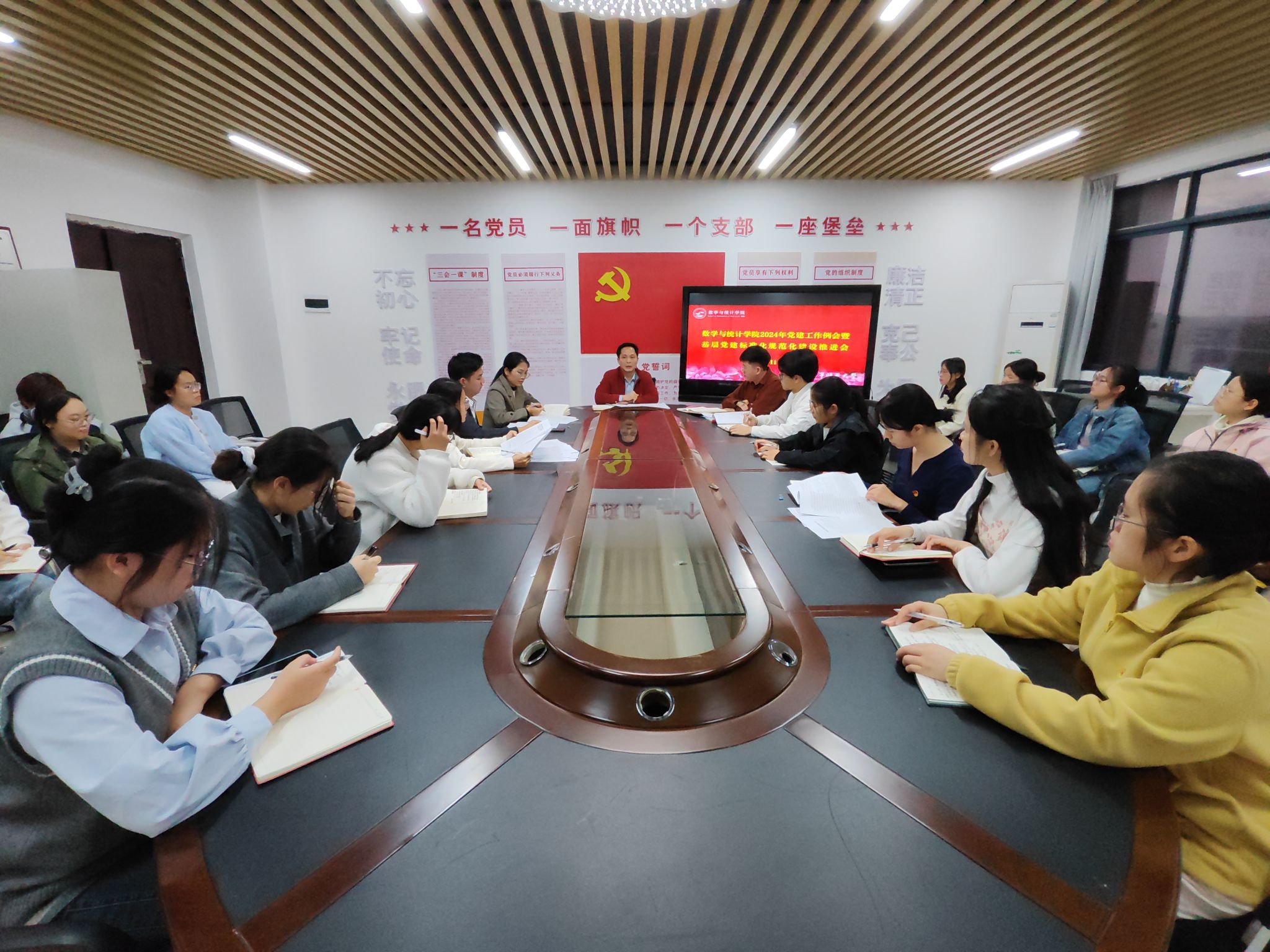 为进一步推进学院基层党组织标准化规范化建设,11月28日下午,数学与统计学院在数统楼A501党员活动室召开2024年党建工作例会暨基层党建标准化规范化建设推进会,学院党委余敢才书记,辅导员代表以及各党支部书记、支委参加会议。