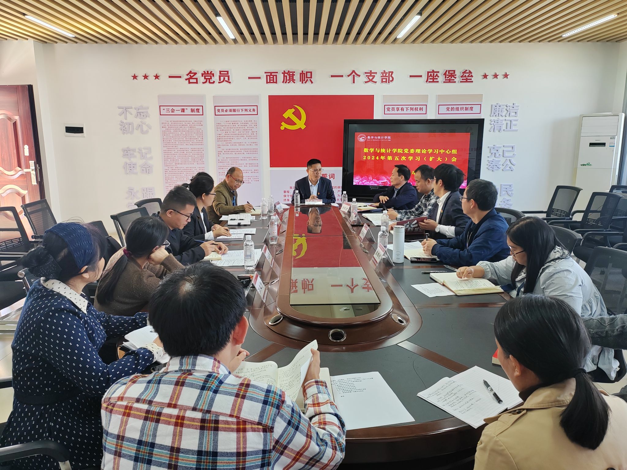 11月26日上午,数学与统计学院在武鸣校区数统楼A501党员活动室召开学院党委理论学习中心组2024年第五次学习(扩大)会。完美(中国)党委副书记隆广庆到会巡听旁听指导,学院党委理论学习中心组成员参加会议,学院各党支部书记列席会议。会议由学院党委书记余敢才主持。