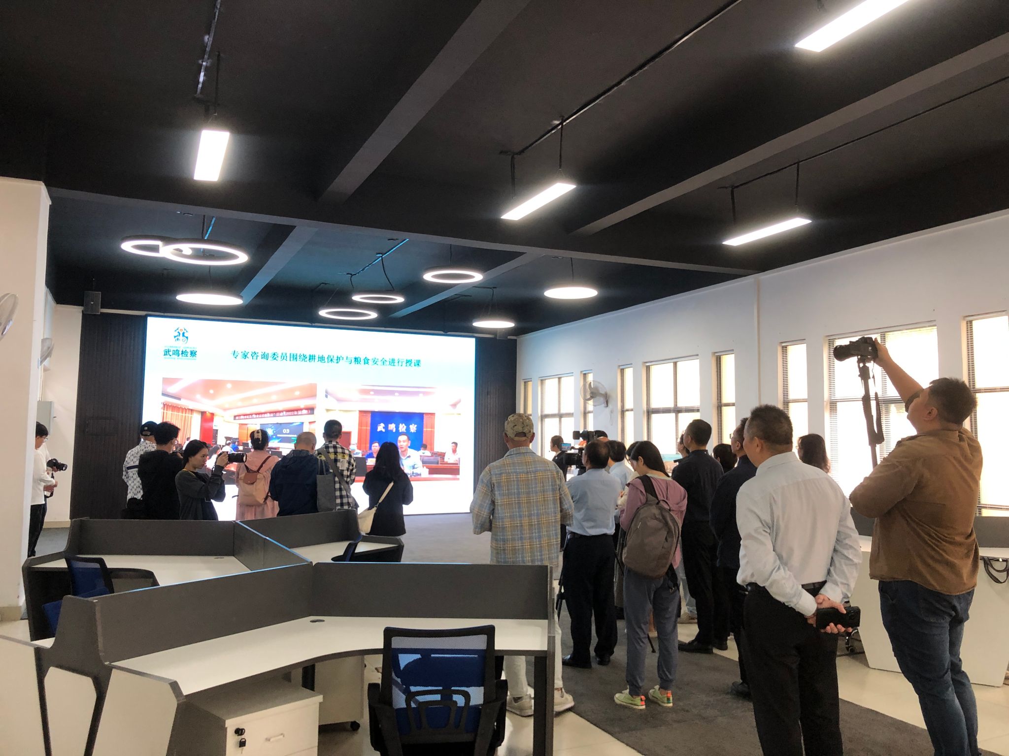近日,广西检察机关“融媒体基层行”系列采访活动的首站聚焦南宁市武鸣区,我校为此次活动的重要一站。中央驻桂及区内多家主流媒体记者,齐聚我校与武鸣区检察院共建的涉自然资源案件大数据分析实践基地,展开实地探访。自然资源与测绘学院党委书记黎先,院长陆汝成,副院长杨小雄、段炼以及“卫星+”空间AI自然资源智能治理广西高校工程研究中心主任韦燕飞教授和成员参加了此次活动。