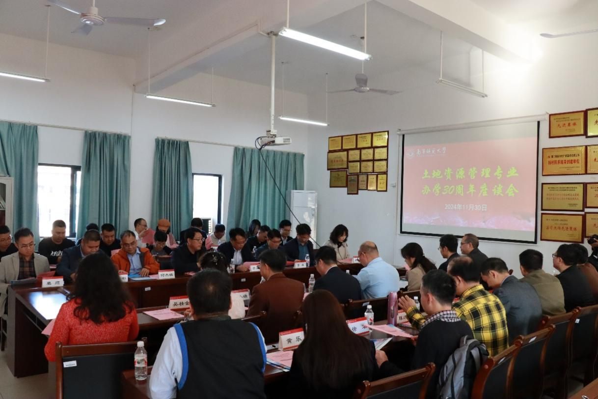 30年栉风沐雨,30年砥砺前行。近日,南宁师范大学自然资源与测绘学院土地资源管理专业办学30周年活动在武鸣校区隆重举行。自治区人大环境与资源保护委员会副主任委员左旭阳,自治区自然资源厅办公室主任苏正国,自然资源厅执法局副局长何杰模,广西国土测绘院副院长杨旺彬,贵港市自然资源局总工程师李庆,广西英华投资有限公司董事长莫烦,广西大源农业科技有限责任公司董事长陈锦培等20多名政府部门和企业校友代表,学院领导、各系负责人、教师代表参加会议。会议由学院院长陆汝成主持。