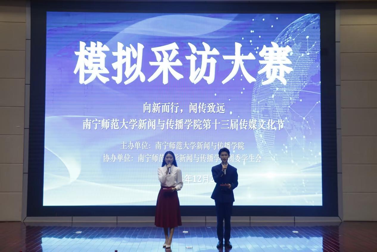 12月2日晚,新闻与传播学院在文综楼114报告厅成功举办了模拟采访大赛的决赛。校党委宣传部新闻中心主任甘友桓、学院广电系主任陈秋凌、学工办辅导员李虹霏以及兰浩玮应邀担任了本次比赛的评委。此外,学院党委副书记黄敏、团委书记李樱花和辅导员周展林也出席了比赛现场。