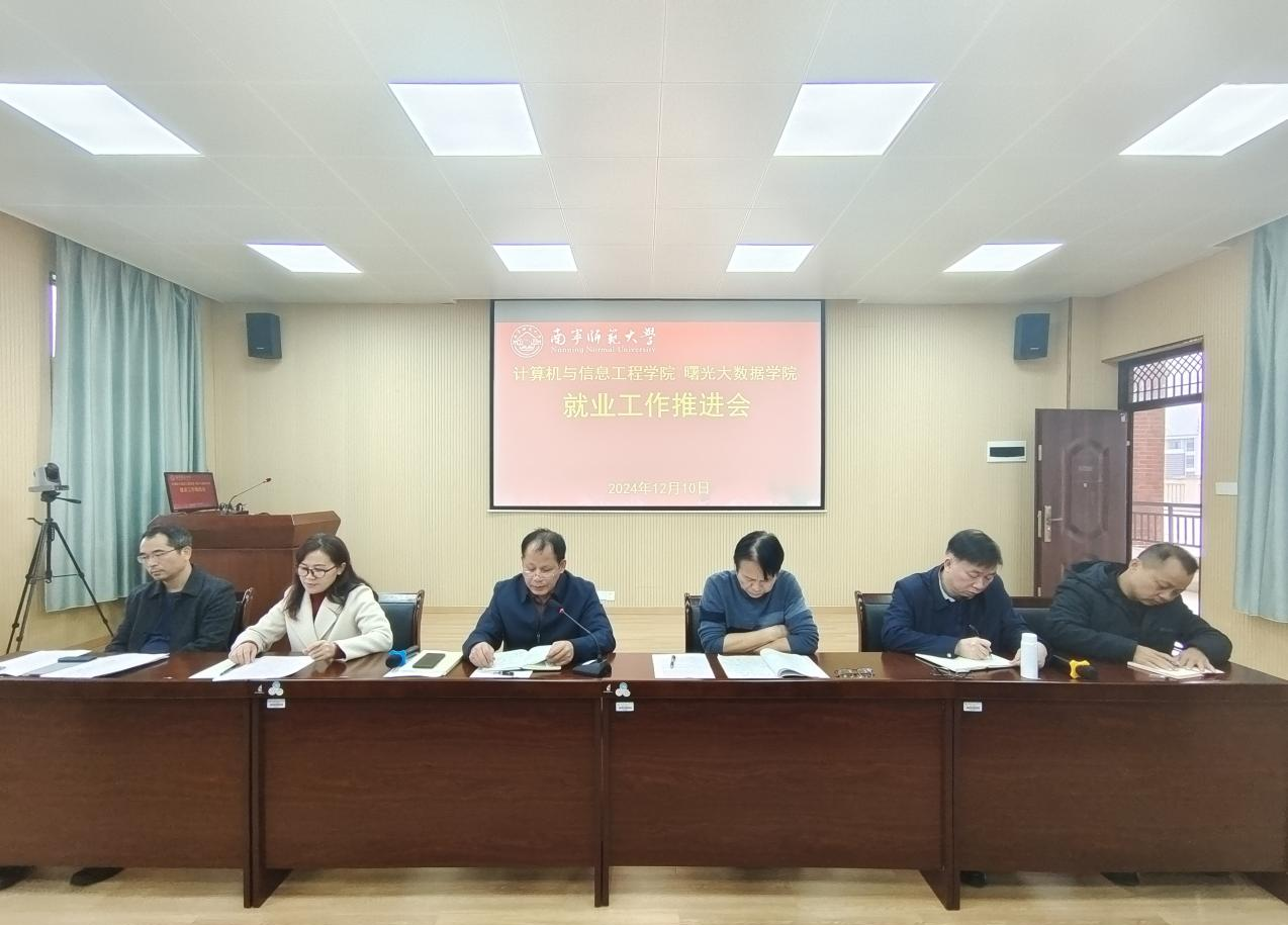 12月10日计算机与信息工程学院/曙光大数据学院在地信楼A301教室召开就业工作推进会议,学院领导班子和全体教职工参加。会议由学院党委书记余朝文主持。
