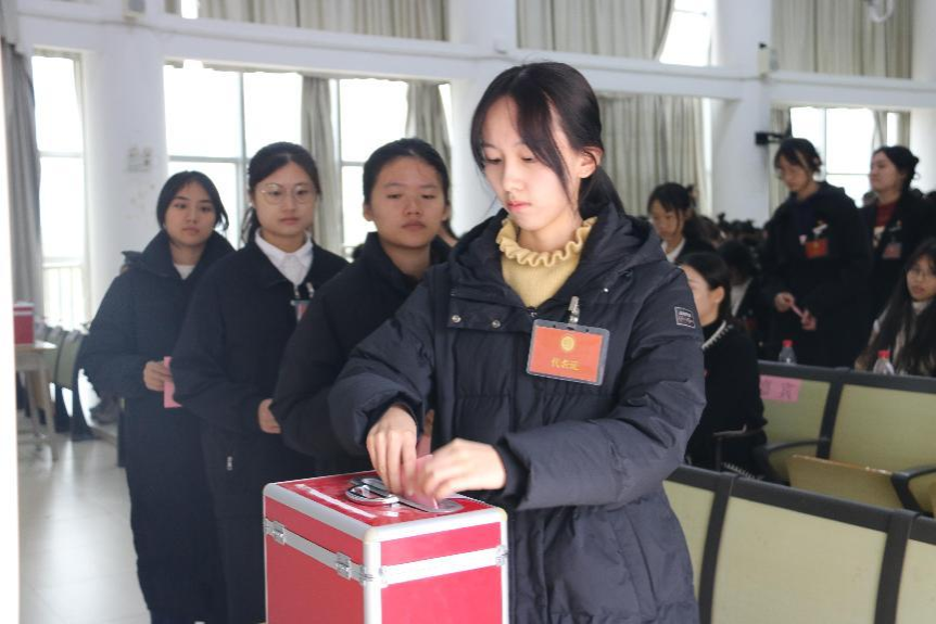 选举过程中,经与会代表慎重投票、监票人员严格监督、计票人员细心统计以及总监票人庄严宣布选票结果等环节,选举产生南宁师范大学初等教育学院第五届学生委员会主席团成员。随后,新当选主席团成员莫莉婷宣读倡议书,向同学们发起以饱满的热情、坚定的信念、务实的作风,共同书写新篇章的号召。在全体与会人员合唱校歌中,大会顺利闭幕。