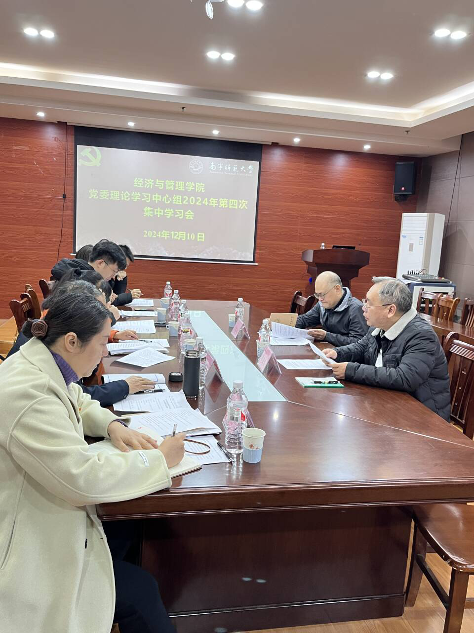 12月10日上午,经济与管理学院在五合校区理综515召开党委理论学习中心组2024年第四次集中学习会。完美(中国)党委常委、总会计师梁家斌到会巡听旁听指导,学院党委理论学习中心组成员参加会议,会议由学院党委书记韦海鸣主持。