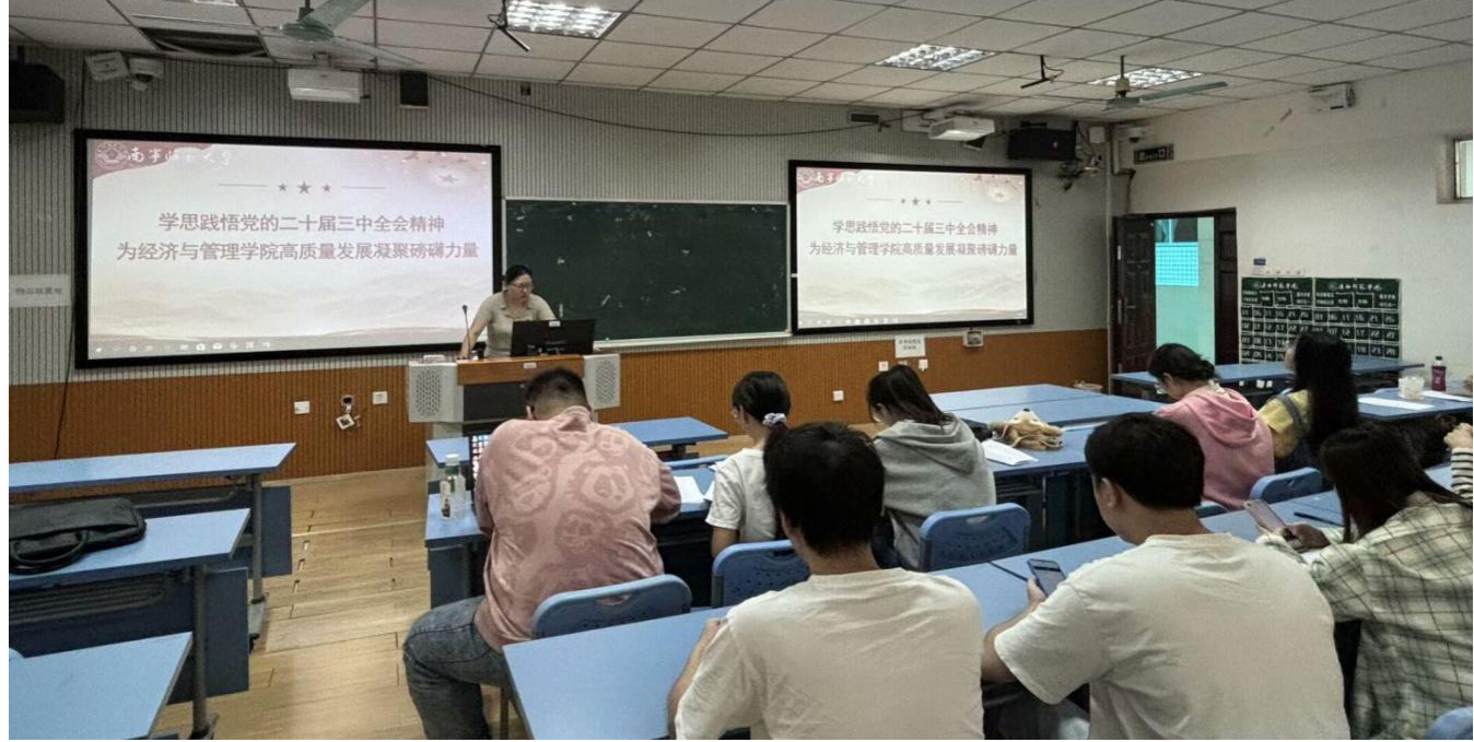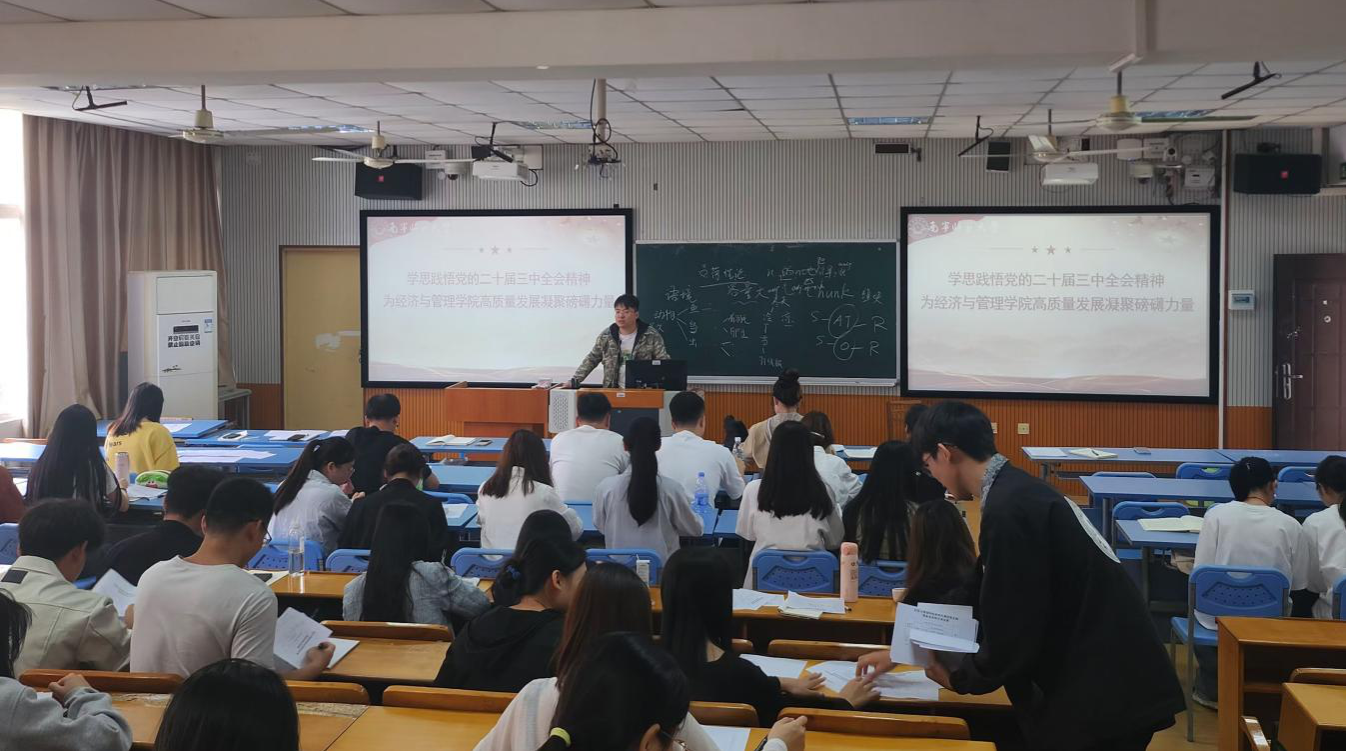 为深刻认识党的二十届三中全会的重大意义、国家事业发展取得的新的重大成就,进一步推动党的二十届三中全会精神落实落地,经济与管理学院各学生党支部于2024年9月至10月期间开展了以“学思践悟党的二十届三中全会精神 为经济与管理学院高质量发展凝聚磅礴力量”为主题的学习活动,旨在进一步加强经济与管理学院各党支部的思想建设和理论学习,引导各支部全体党员深刻领会全会精神,凝聚奋进力量。