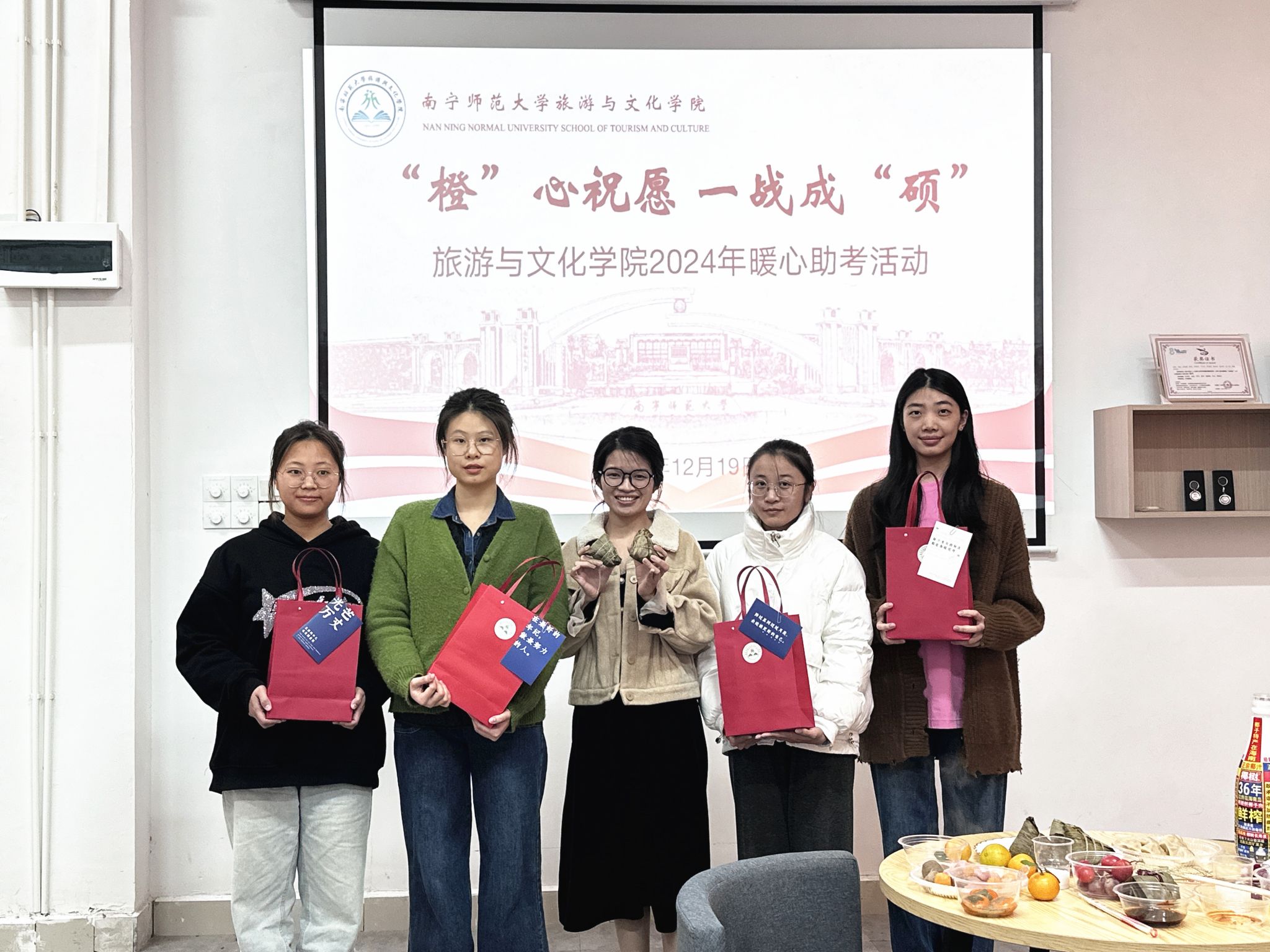 在2024年全国硕士研究生招生考试即将来临之际,为给广大考研学子加油鼓劲,舒缓备考压力,旅游与文化学院于12月19日下午精心组织开展了“‘橙’心祝愿一战成‘硕’”暖心助考活动。学院领导、教师代表与众多研究生党员们齐聚一堂,以爱之名,为考研学子送上最真挚的祝福与关怀,助力他们在考研征程上勇往直前。