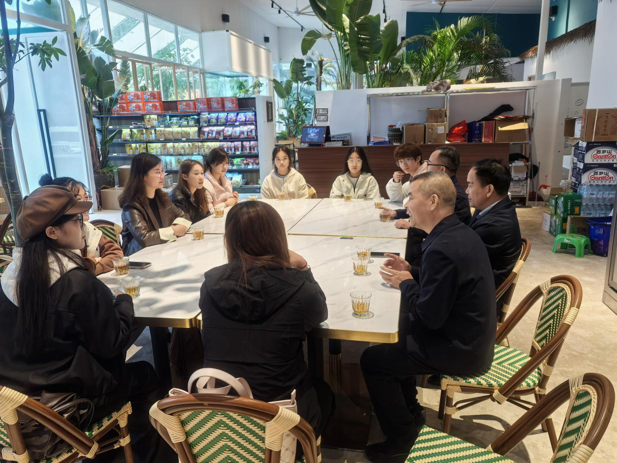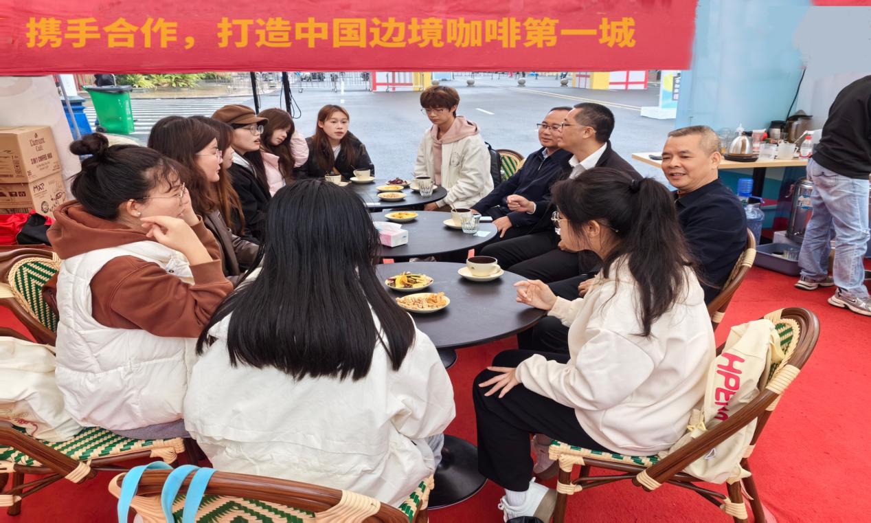 在东兴市中越泰国际食品有限公司,东兴市委常委、副市长黄庶冰和中越泰国际食品有限公司吴庆勋带领师生们参观了中越泰花园里咖啡厅,并围绕激活东兴市咖啡产业的活力、探索咖啡商贸人才培育进行座谈交流,共同探讨咖啡贸易新思路,并积极探讨凝聚校地企合作共识,助力青年人才成长与区域发展“双向奔赴”。在中越咖啡节活动现场,东兴市委常委、办公室主任、咖啡产业发展专班古飞文对师生们的到来表示热烈欢迎,双方围绕东兴市咖啡产业发展、创业就业、咖啡直播带货方面与师生们进行了深入交流,双方在加强校地合作、服务“一区两地一园一通道”建设等方面达成了共识。在东兴边民互市贸易区,东兴市团委书记岳伟超带领师生参观了广西北投建设投资有限公司,介绍了其在共青团建设方面争创“五个一流”的宝贵经验,讲解了边民互市贸易区的基本情况、国家政策、通关流程及特色产品等情况。学院师生还与企业交流了校企合作特别是毕业生就业、大学生创新创业工作设想。