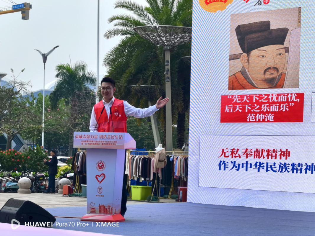 我院2023级播音主持艺术学2班莫伟恒同学作为青年志愿者代表参加了“青年志愿说”风采展示,分享了自己的志愿服务的经历和收获。他的演讲得到了得到了领导嘉宾及市民朋友的认可与赞扬。