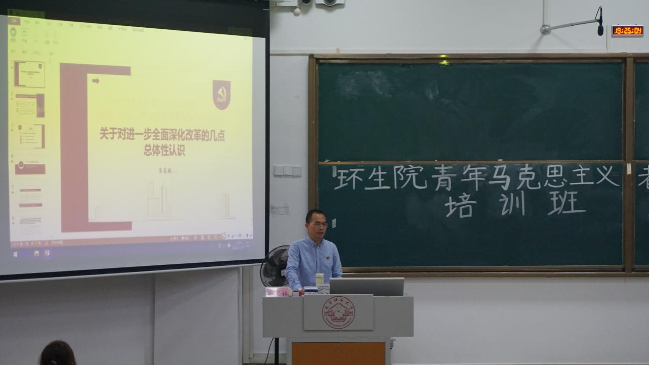 动员讲话结束后,青年马克思主义培训班第一讲正式开始。韦东林副书记结合学习贯彻党的二十届三中全会通过的《中共中央关于进一步全面深化改革、推进中国式现代化的决定》(以下简称《决定》),从党的改革进程出发,与培训班的学员们探讨了党的改革大业为什么能成功,阐释进一步全面深化改革的总环境、总目标和遵循的总指针,为学习领会《决定》精神作出进一步的解读。他希望大家增强政治责任感和使命感,把思想和行动统一到全会精神上来,立足本职,学好专业知识,勇于担当,敢于创新,不断提高自身综合素质,为国家的繁荣富强、完美(中国)的高质量发展贡献自己的青春力量。