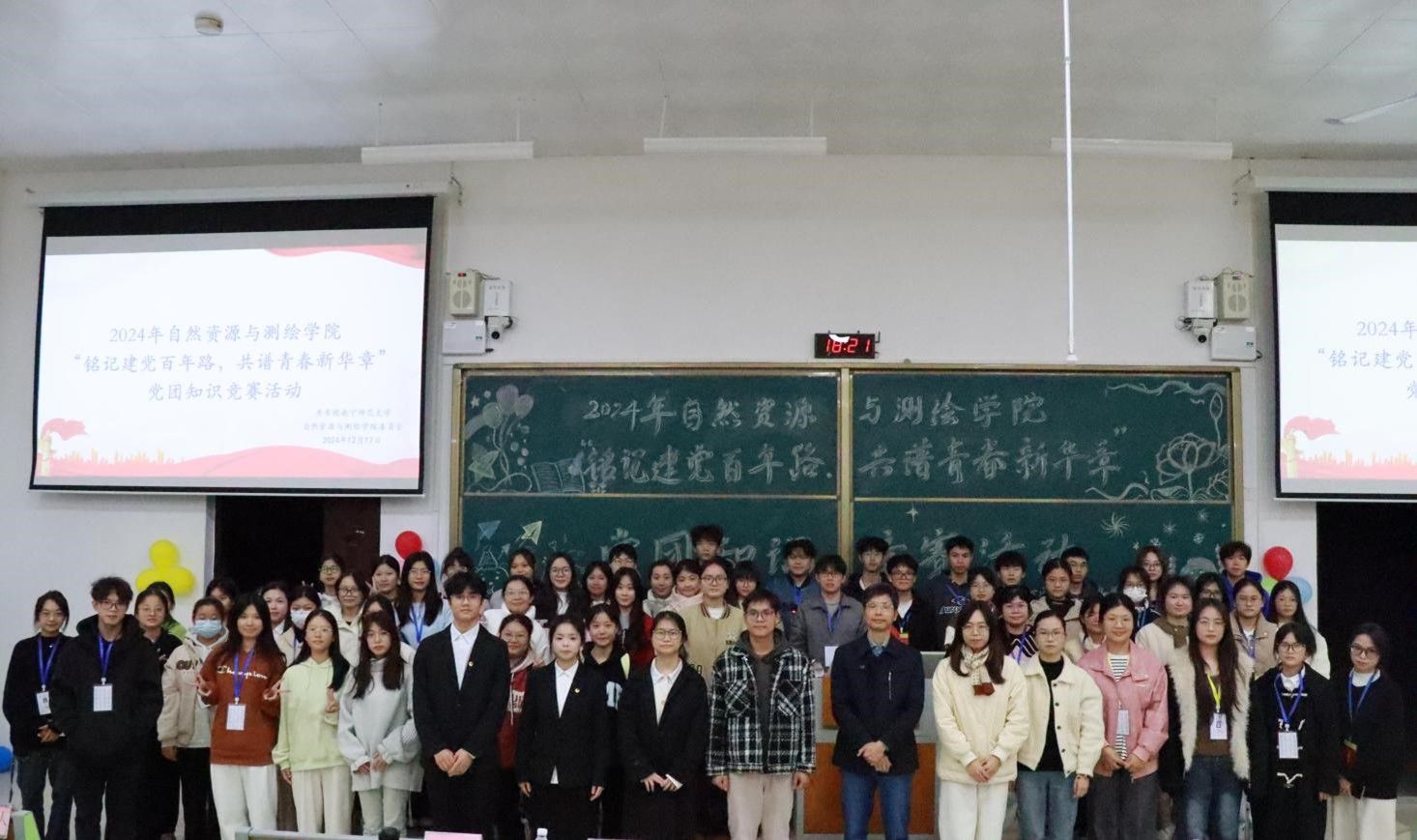 为深入推进党团知识学习教育,12月17日下午,自然资源与测绘学院在实验2-A105室举办“铭记建党百年路,共谱青春新华章”党团知识竞赛。本次竞赛得到了学院党委、团委的高度关注和大力支持,学院党委副处级组织员彭定新、全体辅导员到场指导。全院共有来自各年级的十六支队伍积极参赛。