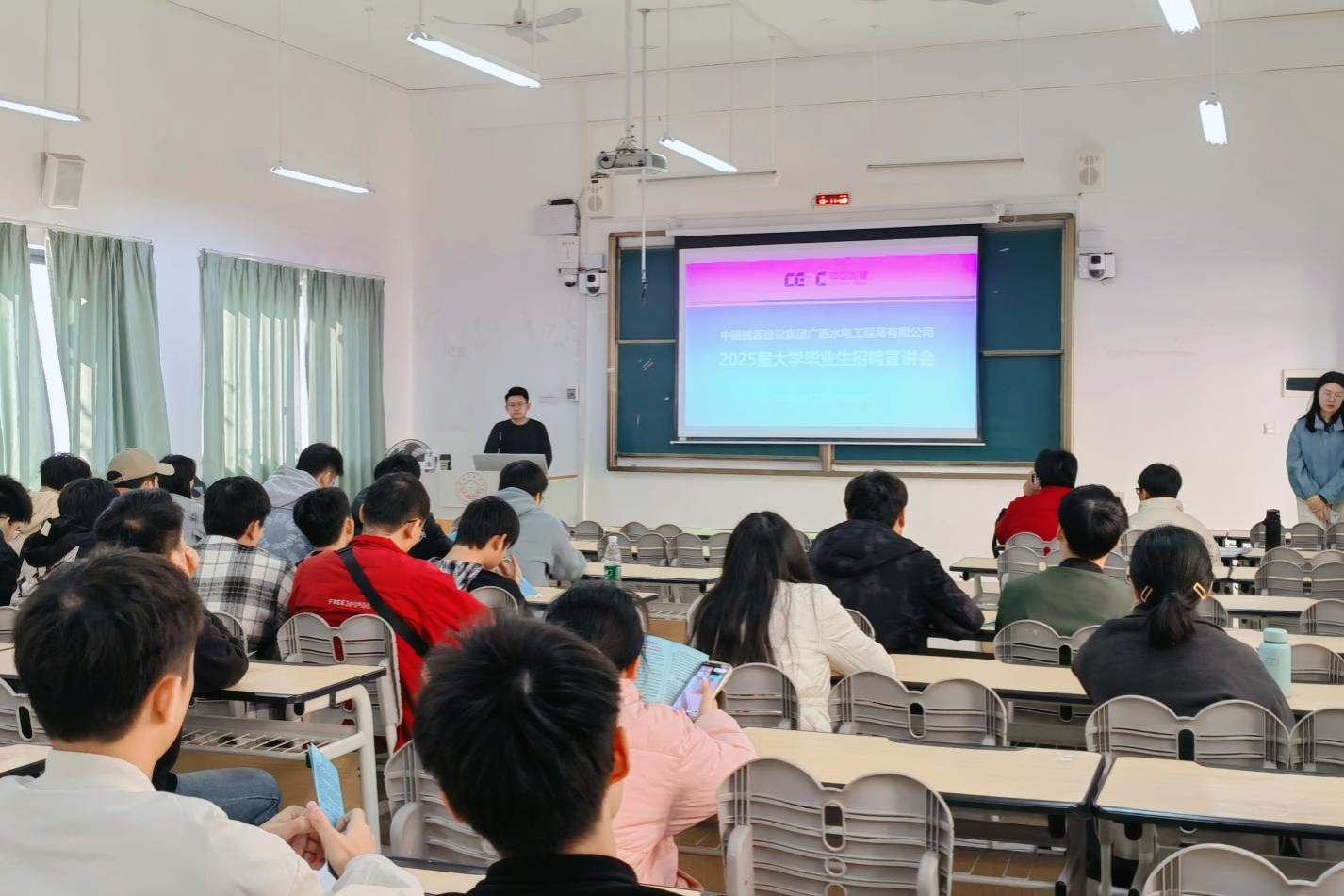 12月20日下午,中国能源建设集团广西水电工程局有限公司(以下简称“广西水电工程局”)在我校武鸣校区一号教学楼119教室举办专场招聘会,来自我校测绘工程、自动化和英语等相关专业应届毕业生参会。自然资源与测绘学院、外国语学院等学院有关负责人和辅导员到现场与用人单位进行交流。