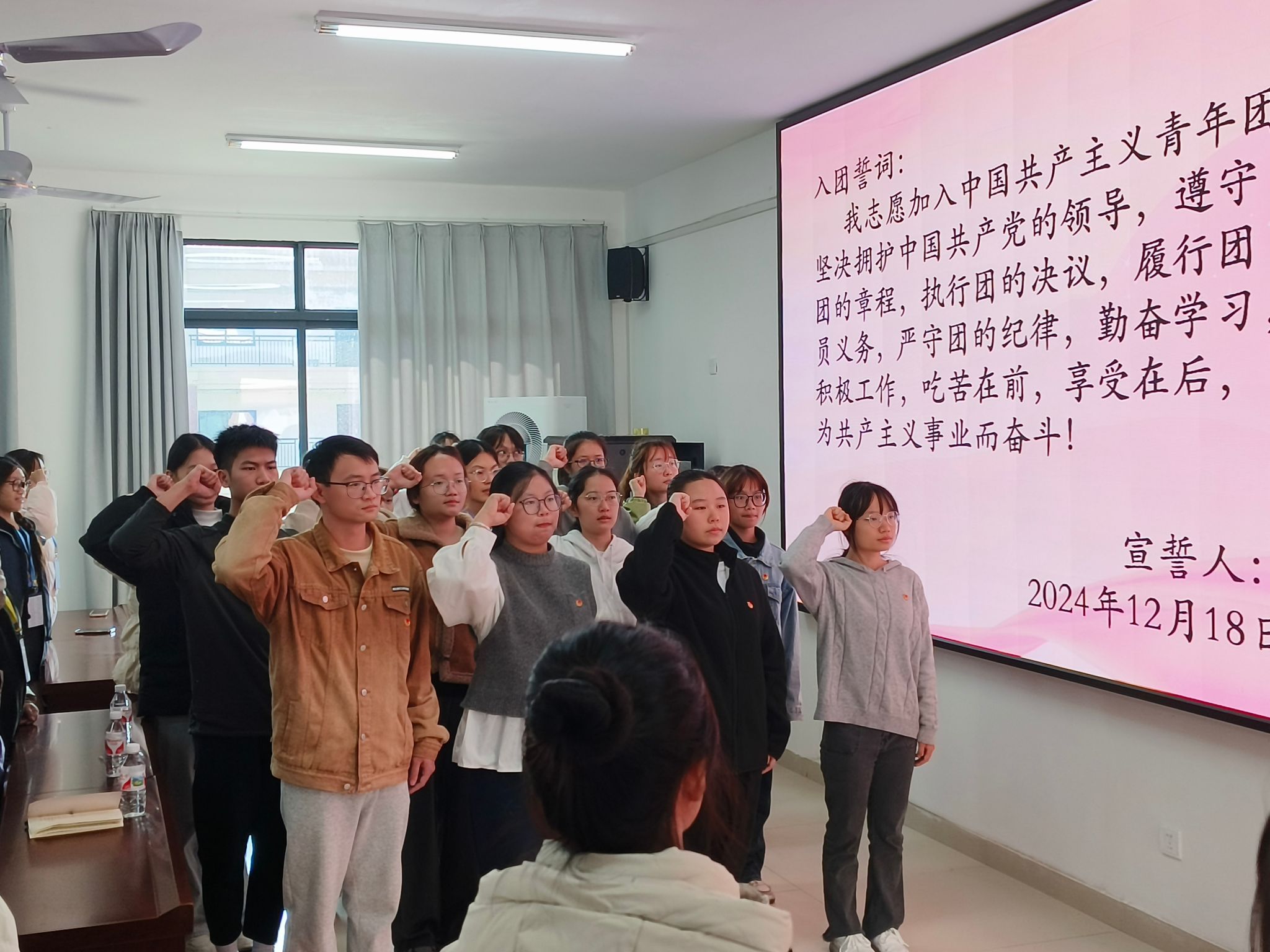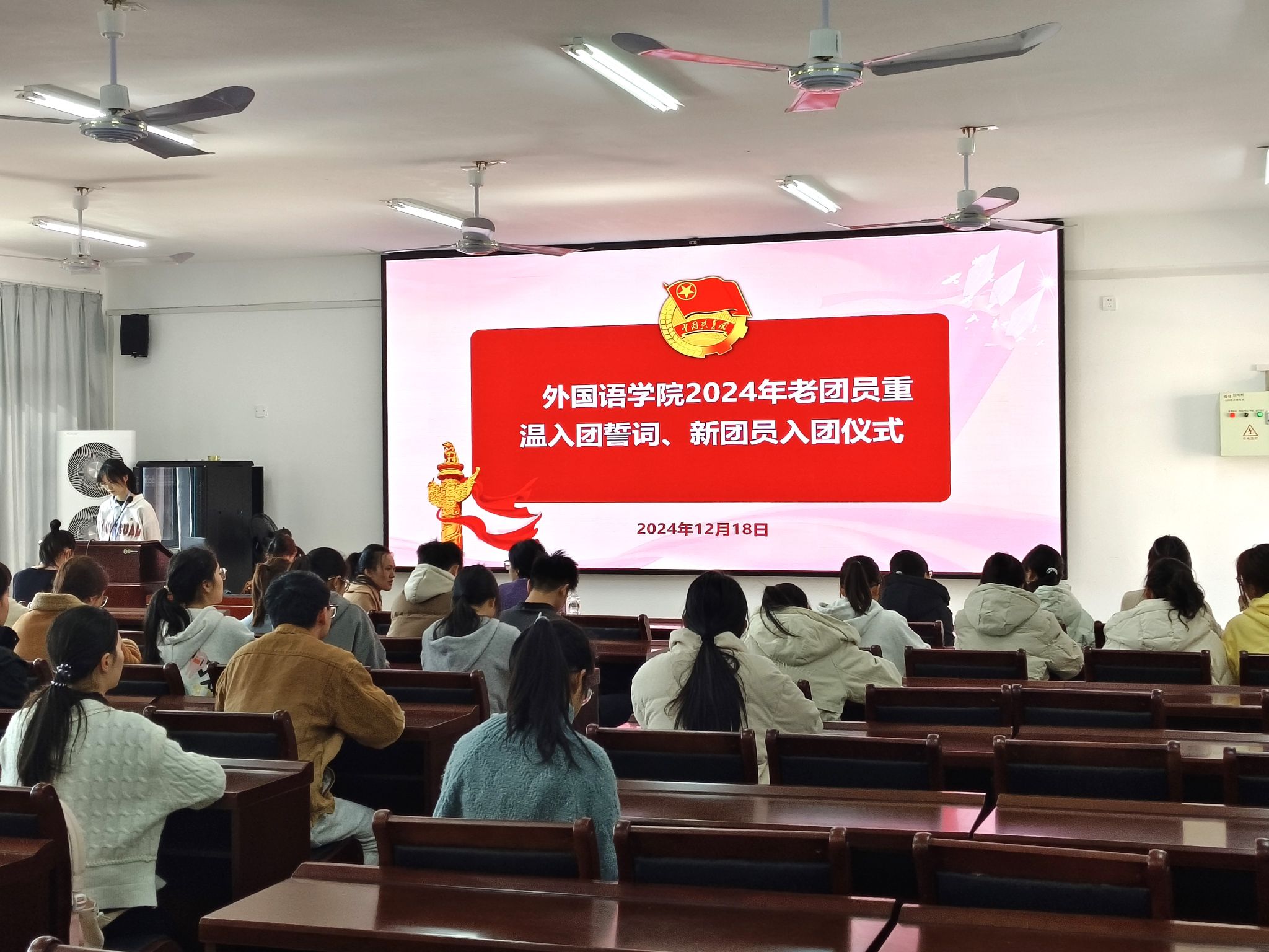 为推进团务工作持续开展,营造积极的团内氛围,南宁师范大学外国语学院于2024年12月18日在武鸣校区实验楼1 - B515报告厅举行了2024年老团员重温入团誓词、新团员入团仪式。本次仪式由院团委组织部谢美玲同学主持,外国语学院学工办蔡梓晴老师、团副主席团的两位代表出席本次活动。