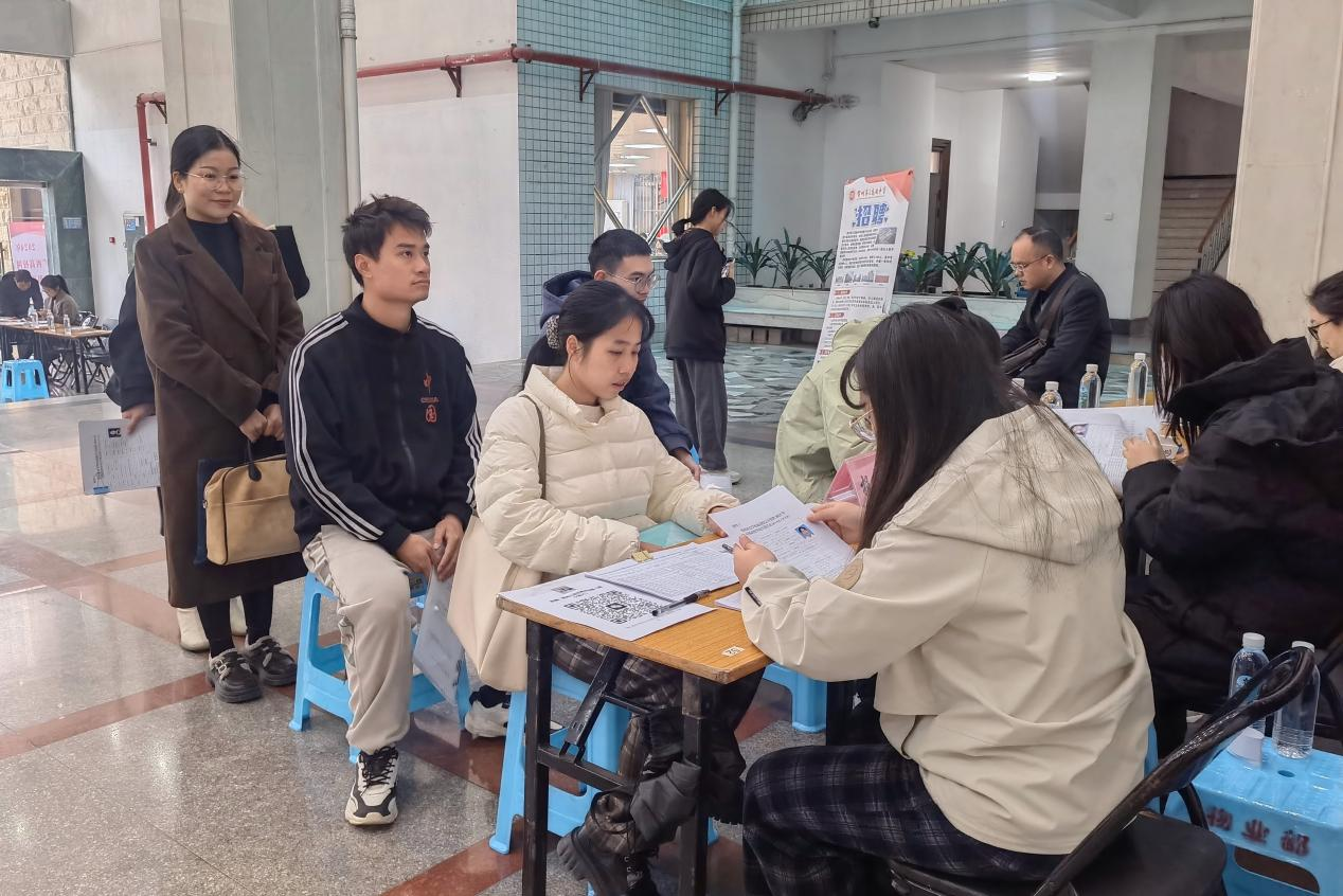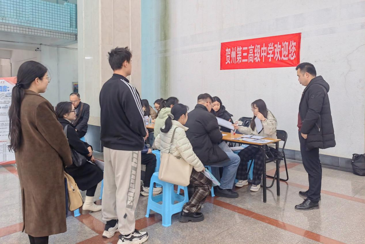 12月26日-29日,贺州市教育局在我校明秀校区举办2025届毕业生专场招聘会。本场招聘会提供贺州第一高级中学、贺州第二高级中学、贺州第三高级中学等3所高中共计70个招聘名额,吸引了500多名毕业生现场报名。经过28日笔试和29日面试及考核环节。最终,我校23名毕业生成功签约。