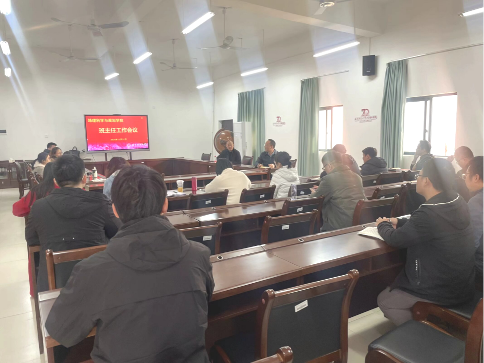 2024年12月31日,地理科学与规划学院在地源楼C401会议室召开班主任工作会议,学院党委书记、副书记、全体辅导员及班主任参与会议。