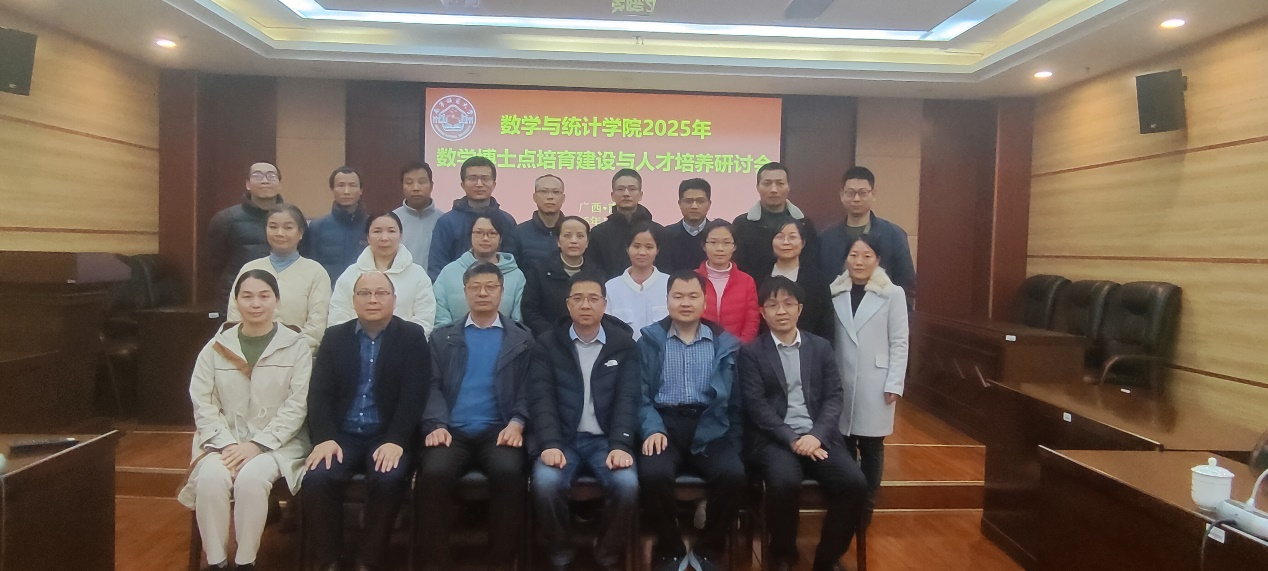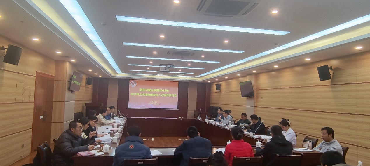 为加快推进数学学科博士点培育工作,1月15日,数学与统计学院召开了数学博士点培育建设与人才培养专题研讨会。邀请了三位杰出青年基金获得者,来自中国科学技术大学的王毅教授、苏州大学的曹永罗教授、杨大伟教授莅临现场为学院的博士点建设把脉问诊。学院院长黄在堂、副院长韦扬江、刘利斌、教研室主任以及学术骨干教师参加了会议。会议由黄在堂主持。