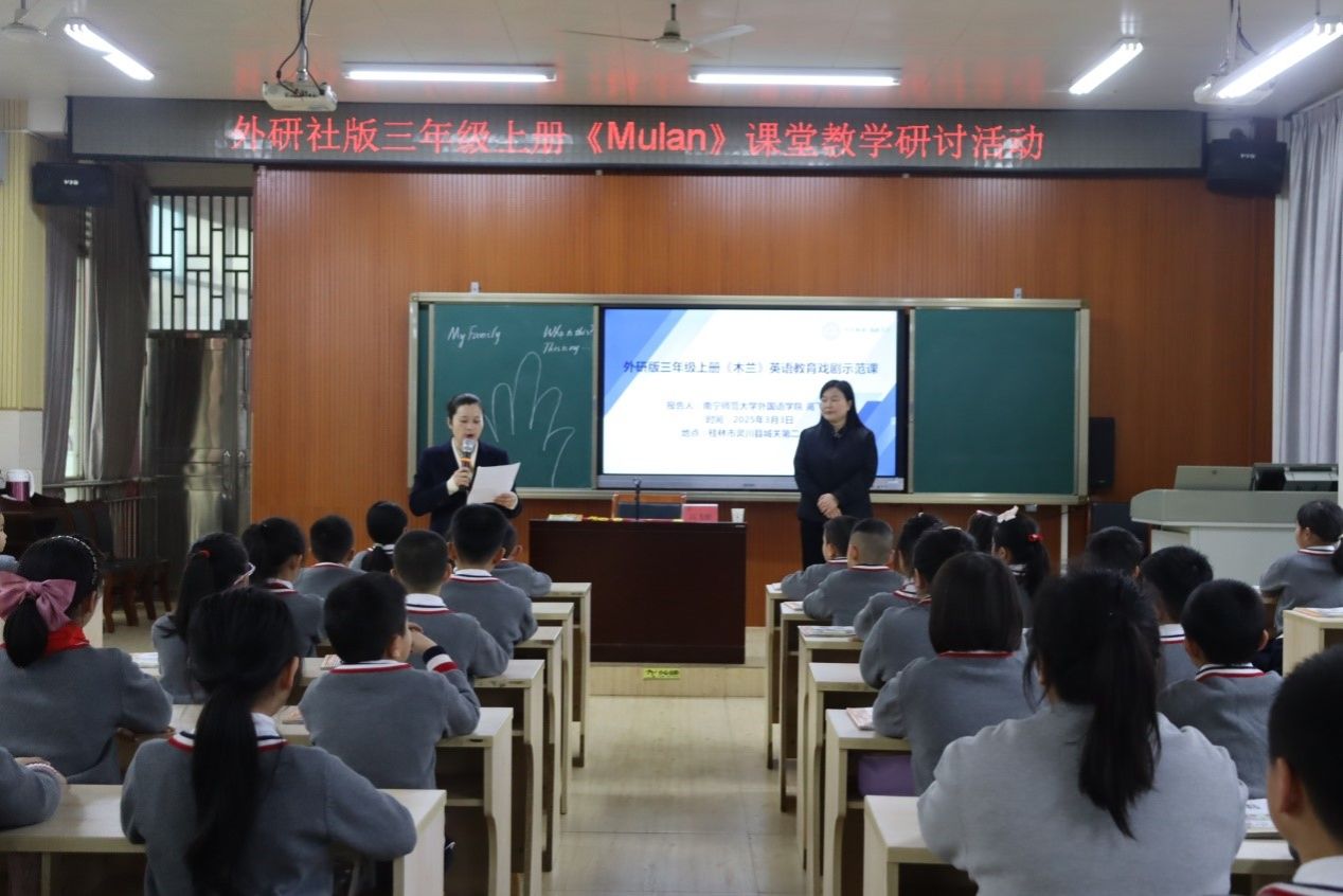 为深入践行国家新课标新教材育人理念,推动英语学科核心素养理念下的教学改革与创新,培养具有家国情怀、全球视野、能用英语讲好中国故事的高素质教师队伍,南宁师范大学外国语学院副院长高飞雁于2025年3月3日上午赴桂林市灵川县城关第二小学,参加2025年春季学期灵川县小学第二学区英语课堂教学研讨活动。