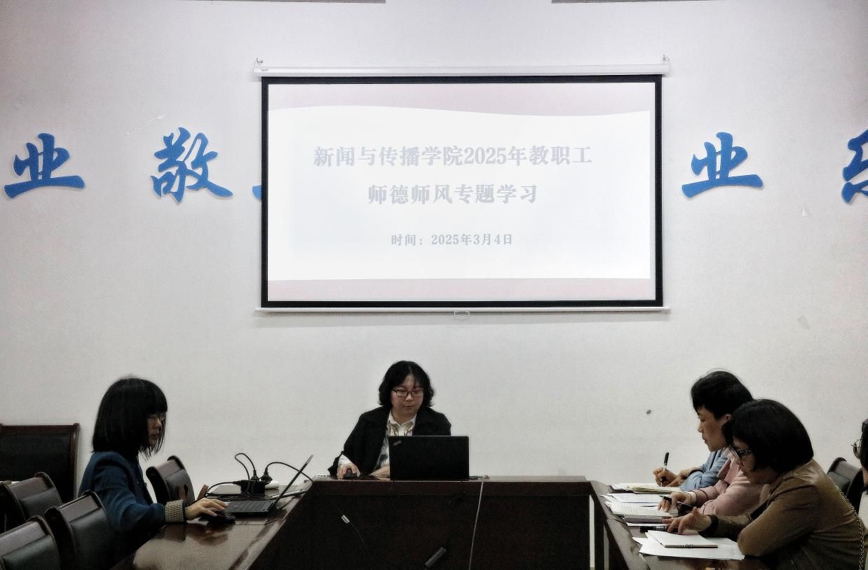 为进一步强化高校教师队伍职业道德建设,弘扬新时代教育工作者风范,3月4日下午,新闻与传播学院在理综304召开2025年教职工师德师风专题学习会议。本次会议由学院党委黄敏副书记主持,学院领导班子和全体教职工参加。