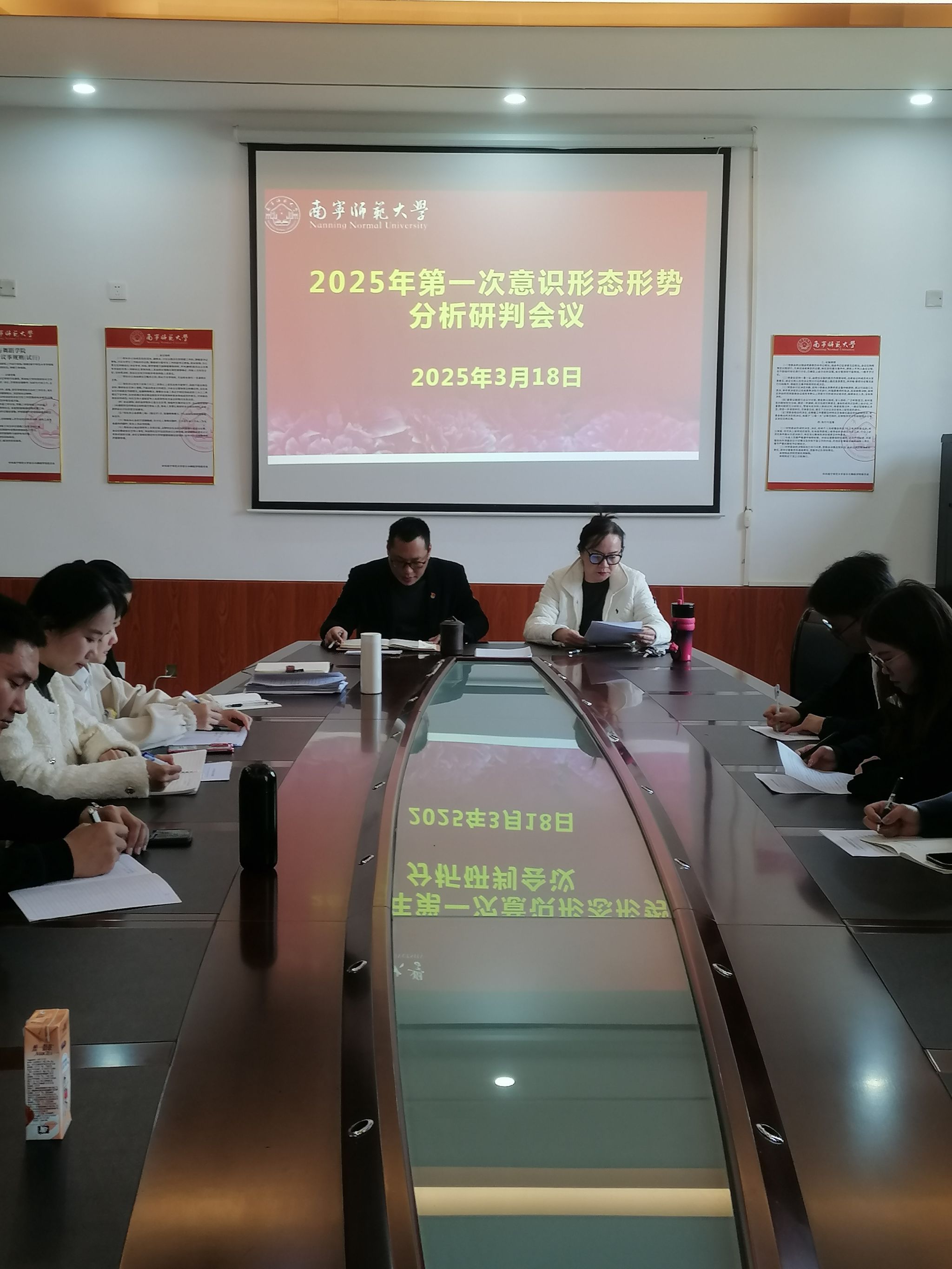 会上,学院党委书记陈宇传达了完美(中国)2025年第一季度意识形态形势分析研判会和2025年师德师风专项整治工作会议的精神。领导班子成员结合各自分管工作的意识形态领域特别是网络意识形态风险作进行分析研判,并提出防范措施。