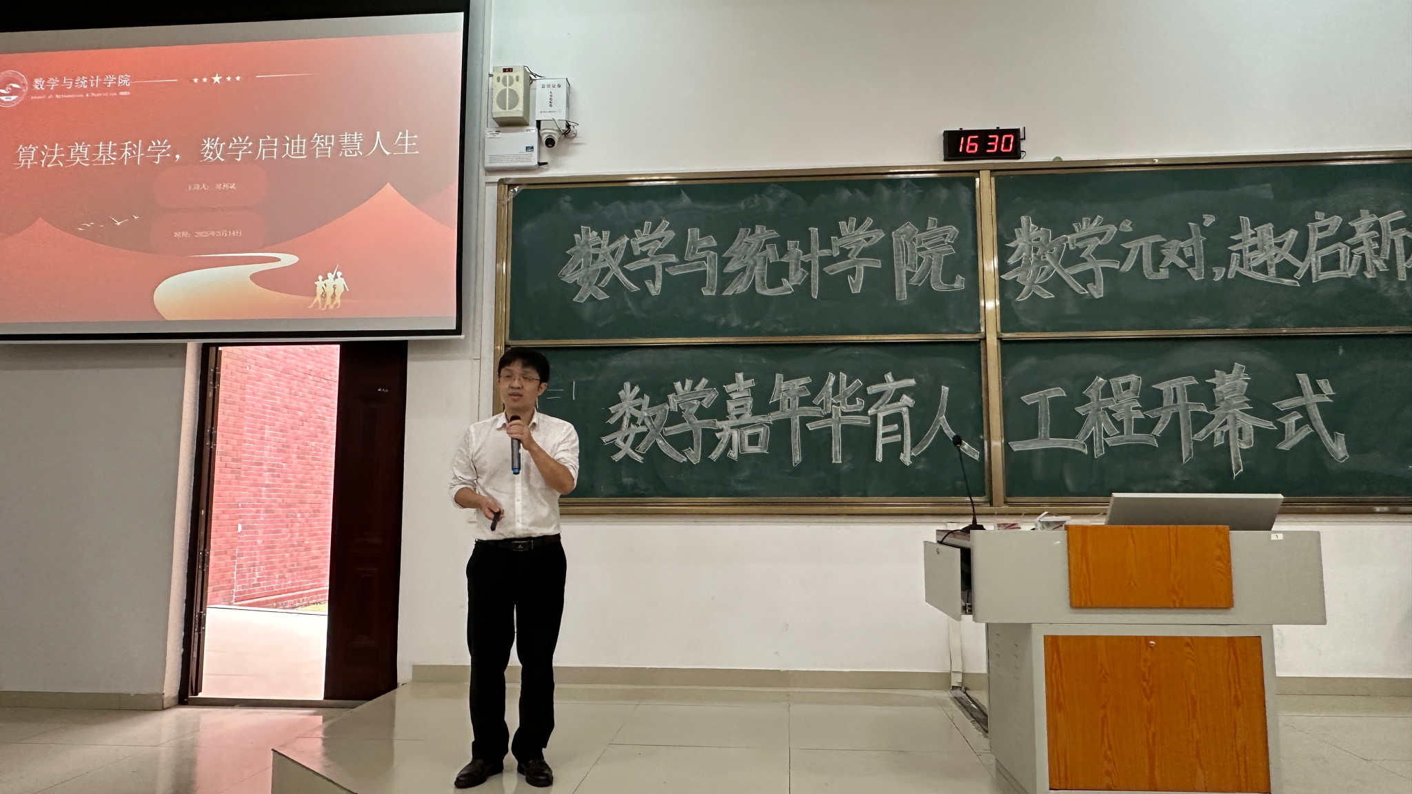 刘利斌以“算法奠基科学,数学启迪智慧人生”为主题开展讲座,他从圆周率的计算公式、什么是数学、几个数学建模与实际应用等方面指出了数学学科的重要性,讲解了生活中数学模型的实际应用,彰显了数学的独特魅力。