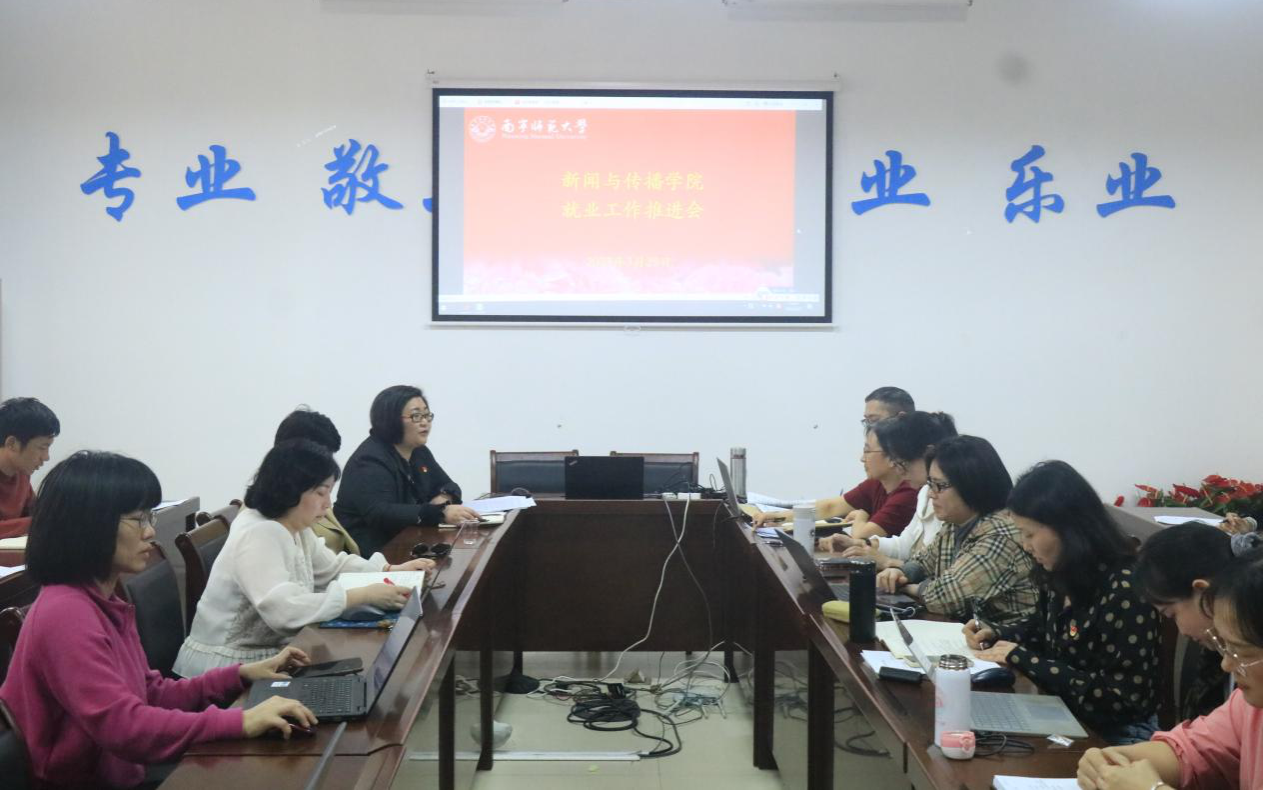 3月25日下午,新闻与传播学院在理综楼304会议室召开本学期第三次就业工作推进会,学院主要领导和学院全体教职工参加会议。会议由学院党委书记聂卉主持。