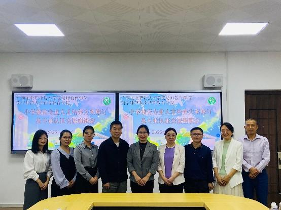 在交流会上,在林英副院长和梁宇院长分别介绍与会人员以及各自学院的基本情况后,双方分别就人才培养方案中课程的设置、基本功训练与考核、小学教育专业师范专业认证等相关事项开展了交流。期间,双方针对人培方案的课时安排、基本功考核训练与考核学分设置、社团参与等相关工作细节展开了深入的探讨和经验共享。此外,双方就专升本学生就读初等教育学院的培养情况等事项进行交流。