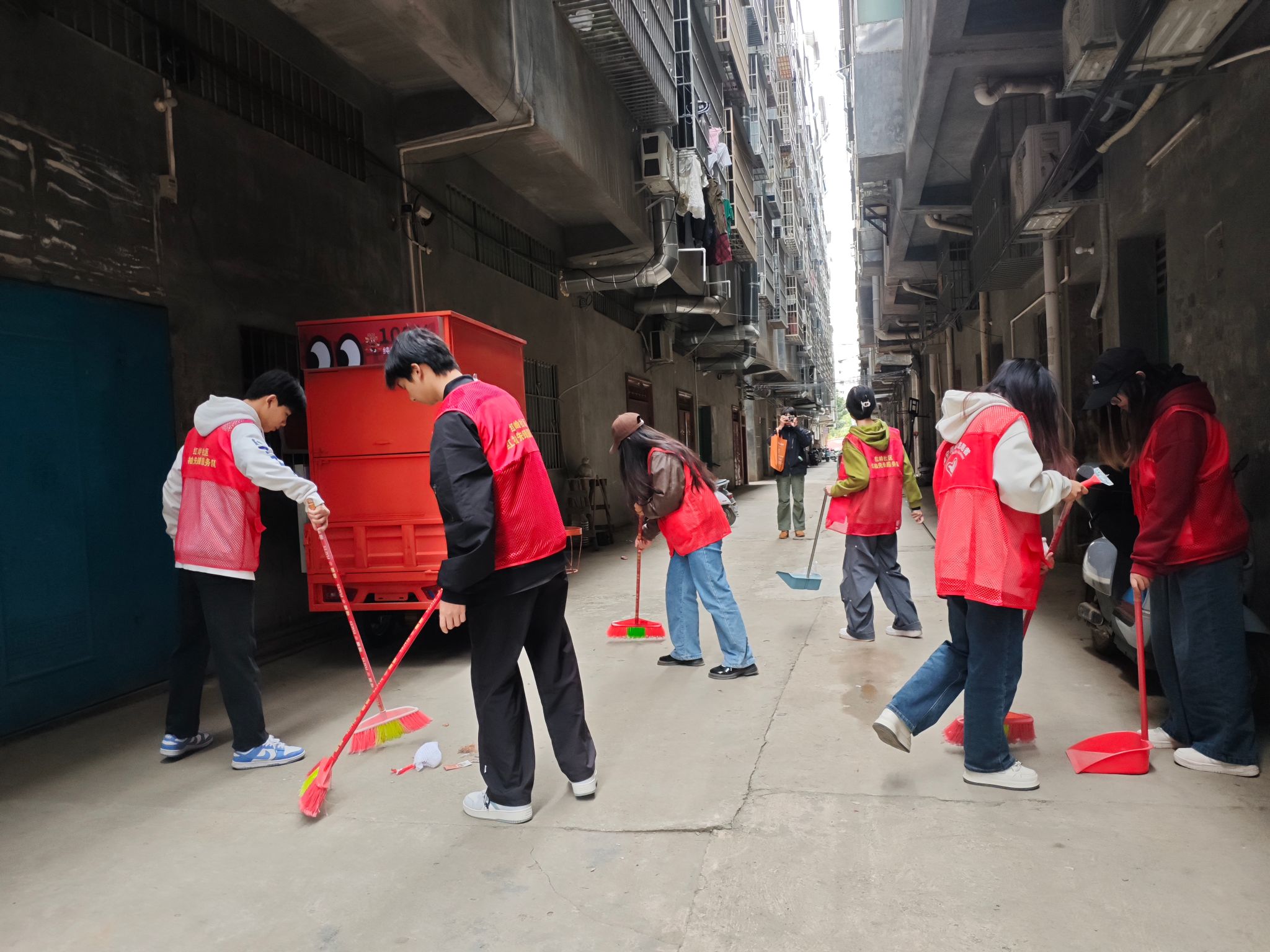 活动当日,全体志愿者准时抵达指定集合地点,携带专业清扫工具,严格依照预先制定的分组方案,有序展开清扫活动。志愿者们对社区公共区域进行全方位清洁,重点清理卫生死角,有序维护公共设施等,有效改善了社区环境质量。在志愿服务过程中,各组成员密切配合、协同作业,充分展现了当代大学生志愿者队伍的专业素养与团队精神,用实际行动弘扬新时代雷锋精神。