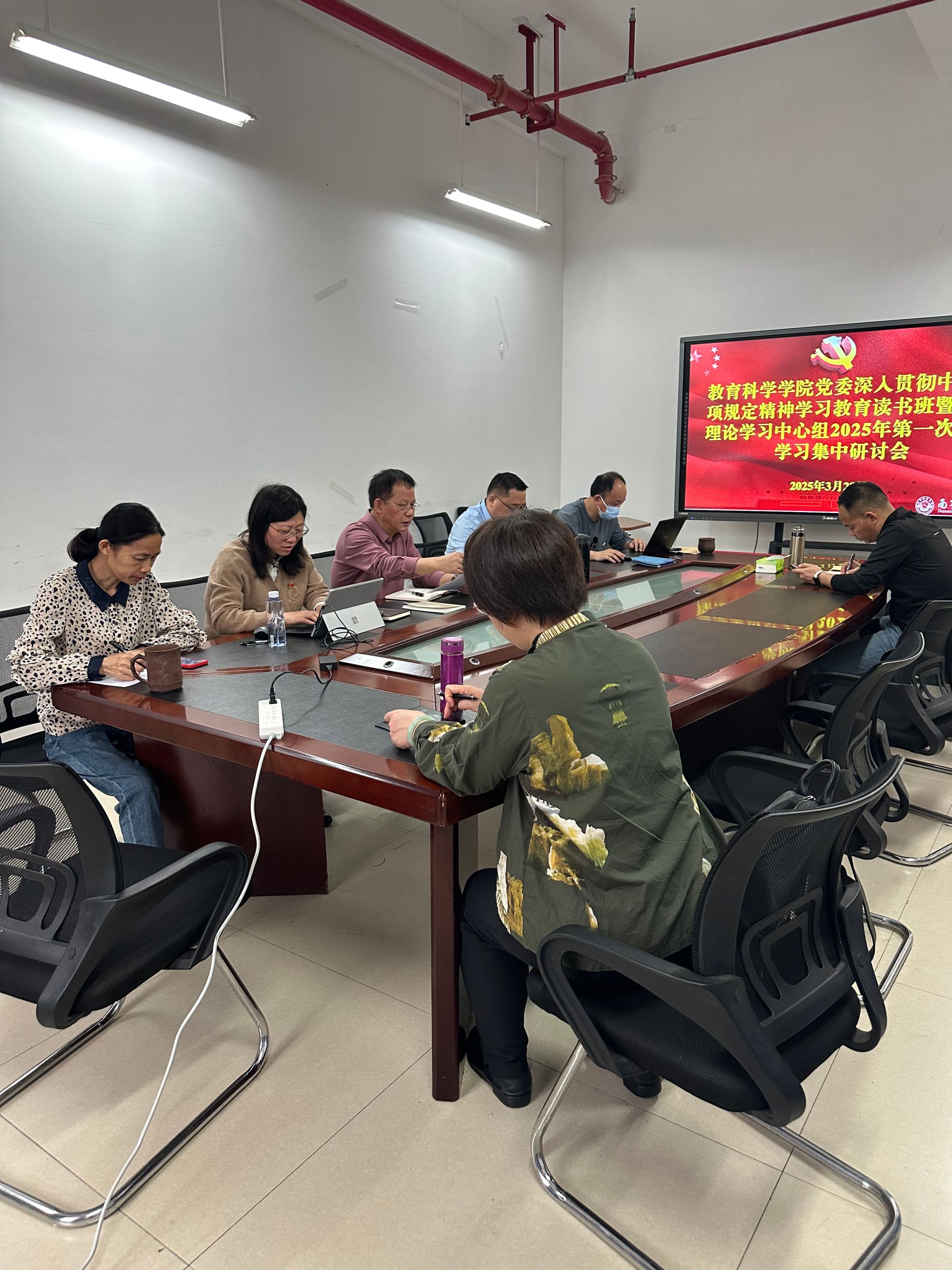 3月28日上午,教育科学学院党委召开深入贯彻中央八项规定精神学习教育读书班暨学院党委理论学习中心组2025年第一次专题学习集中研讨会。学院领导班子、党委委员、纪委委员参会,学院党委书记余朝文主持会议。
