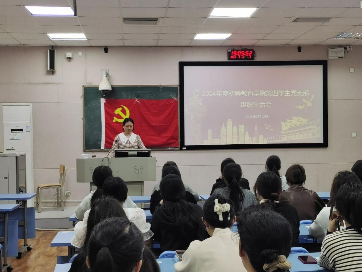 3月中旬,初等教育学院第四学生党支部在五合校区综合楼510教室召开2024年度第四学生党支部组织生活会。此次会议由支部书记李露露主持,支部全体党员参加会议。