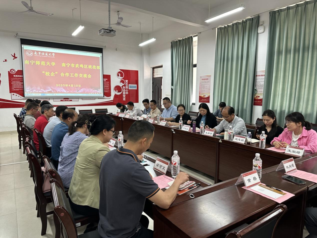 4月10日下午,我校联合武鸣区委统战部召开校企合作项目交流会。我校党委统战部、环境与生命科学学院的领导和教师代表出席会议。参加本次会议的还有南宁教育园区东片区建设指挥部、武鸣区农业农村局、科技局、工商联等5个单位及5家民营企业代表。