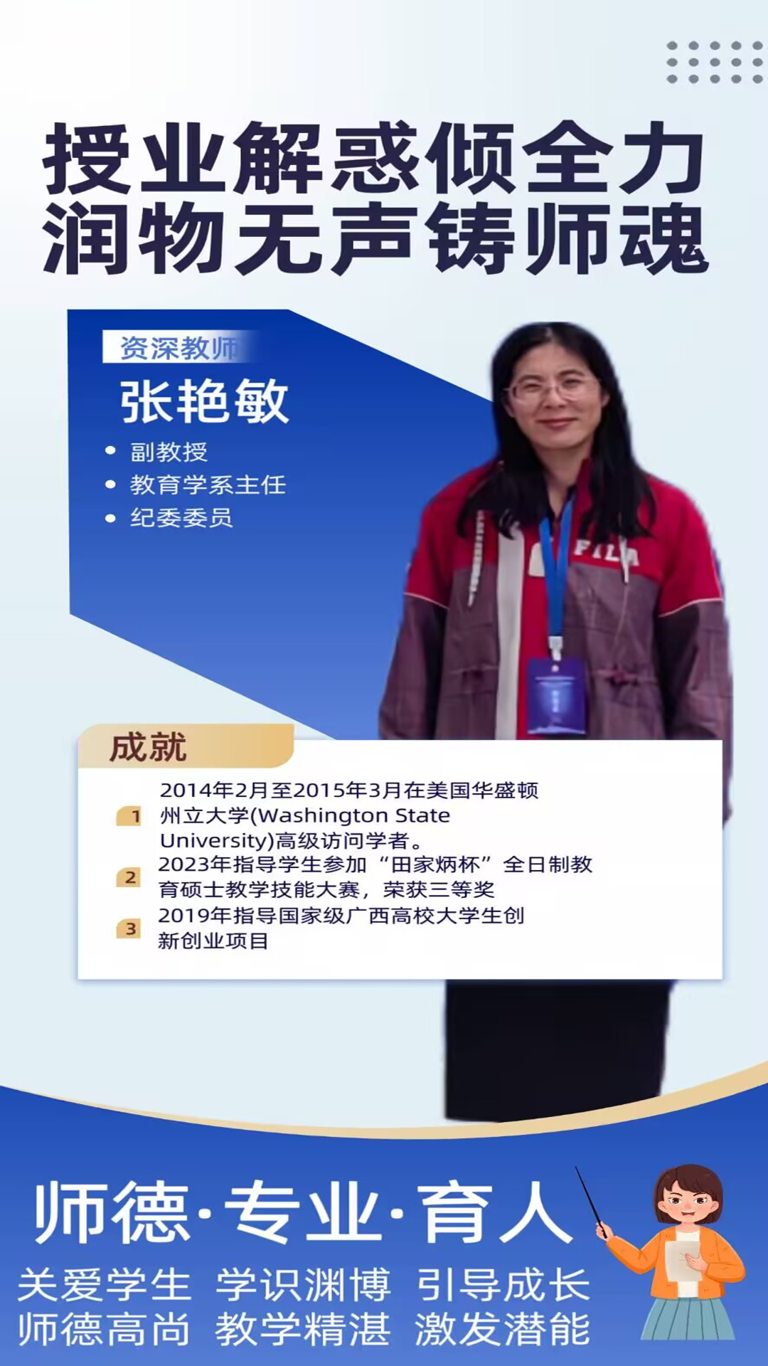 为弘扬尊师重教,赓续教育情怀,教育科学学院举办了“AI创视界·教育润心田”活动,以用AI技术展现心目中的好老师为主题,鼓励学生收集教师信息,利用AI软件整合资源并创作海报,促使同学们深入思考好老师的定义,挖掘教师的优秀品质,增进师生间的理解与互动。