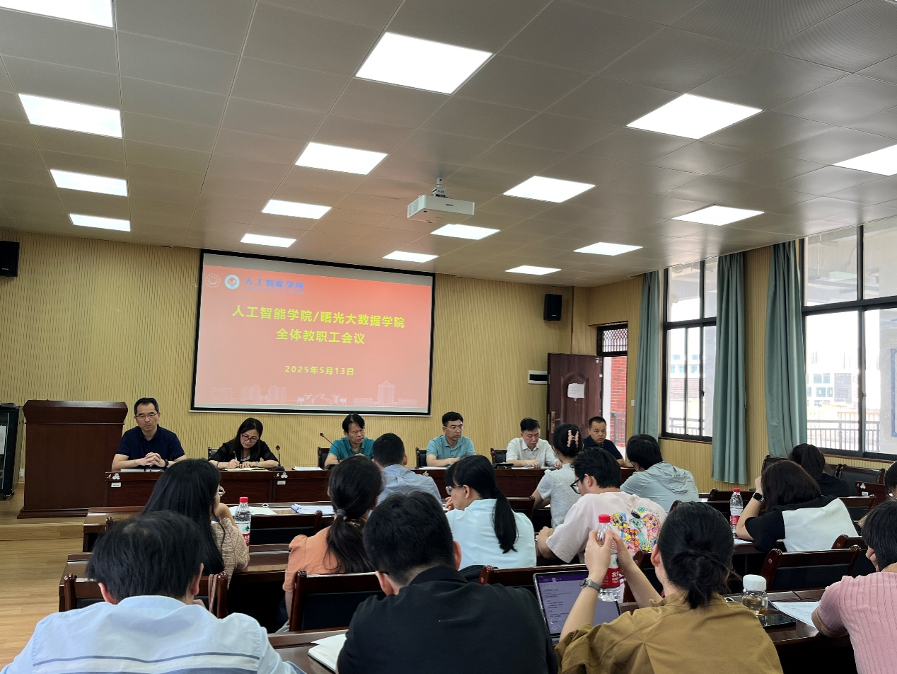 5月13日,人工智能学院/曙光大数据学院在地信楼A301教室召开意识形态与校园安全形势研判专题会,学院领导和全体教职工参加。会议由学院党委副书记(主持党委工作)黄江涛主持。