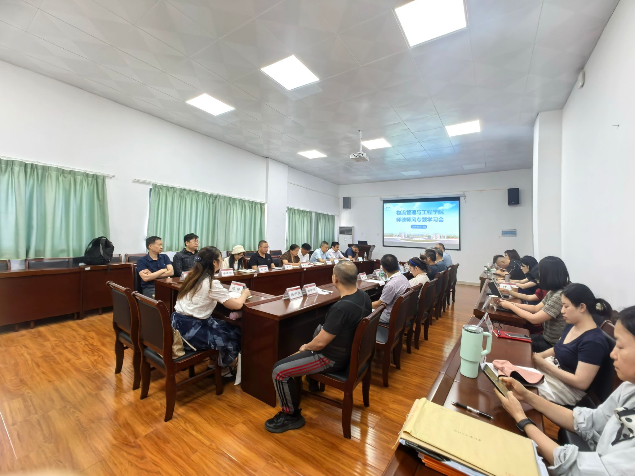 5月13日下午,物流管理与工程学院在武鸣校区地化楼C414室召开师德师风专题学习会,学院全体教职工参加会议,会议由学院党委书记陈兵主持。