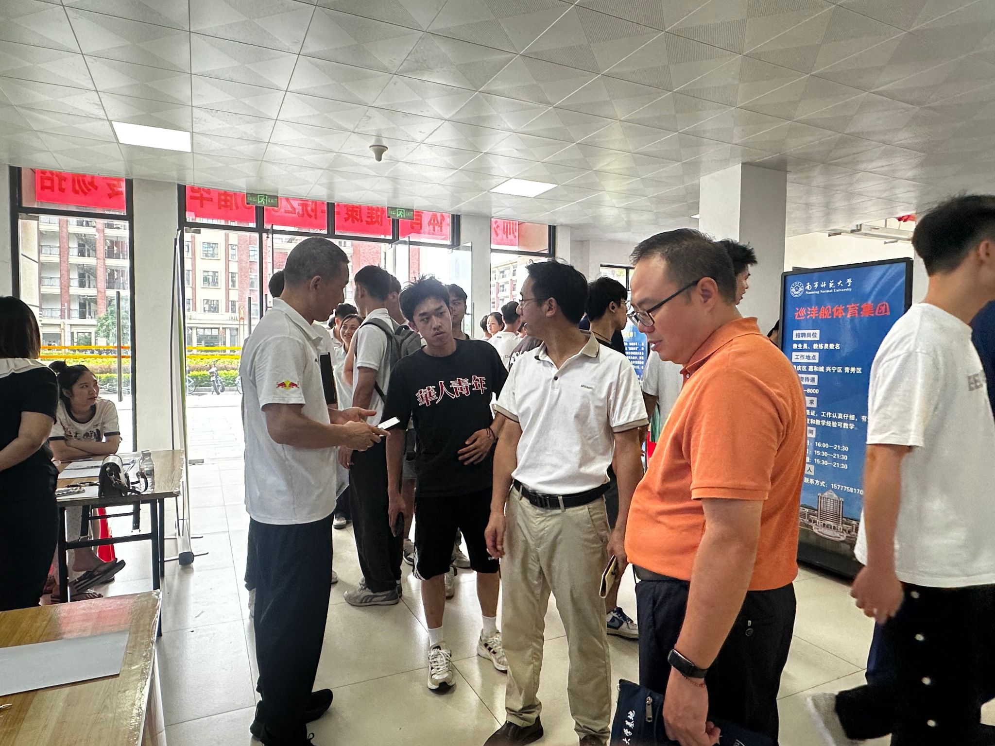 学院提前精心部署,本次招聘会共有14家用人单位参与,面向体育教育专业、社会体育指导与管理专业进行招聘,包括南宁市消防救援大队、广西嘉奕投资有限公司以及广西卓跃体育文化有限公司等企事业单位,南宁师范大学征兵工作站也到场进行毕业生征兵工作宣传并提供咨询。招聘会现场气氛热烈,同学们积极与用人单位交流,深入了解用人单位的基本情况与需求。学院老师在现场提供简历修改指导、岗位推荐、政策解答等服务,帮助学生选择岗位,向用人单位推荐毕业生。招聘会还吸引了低年级的学生到场进行了解,争取实习机会。