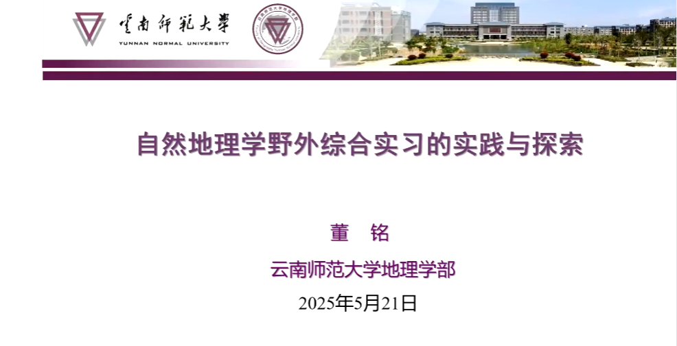 云南师范大学董铭老师以“自然地理学野外综合实习的实践与探索”为主题,从云南省的自然地理概况、实习路线安排、主要特色实习资源、实习路线的科学问题及思政资源、实施过程及成效等角度,介绍了云南师范大学自然地理野外实习课程的开设情况。