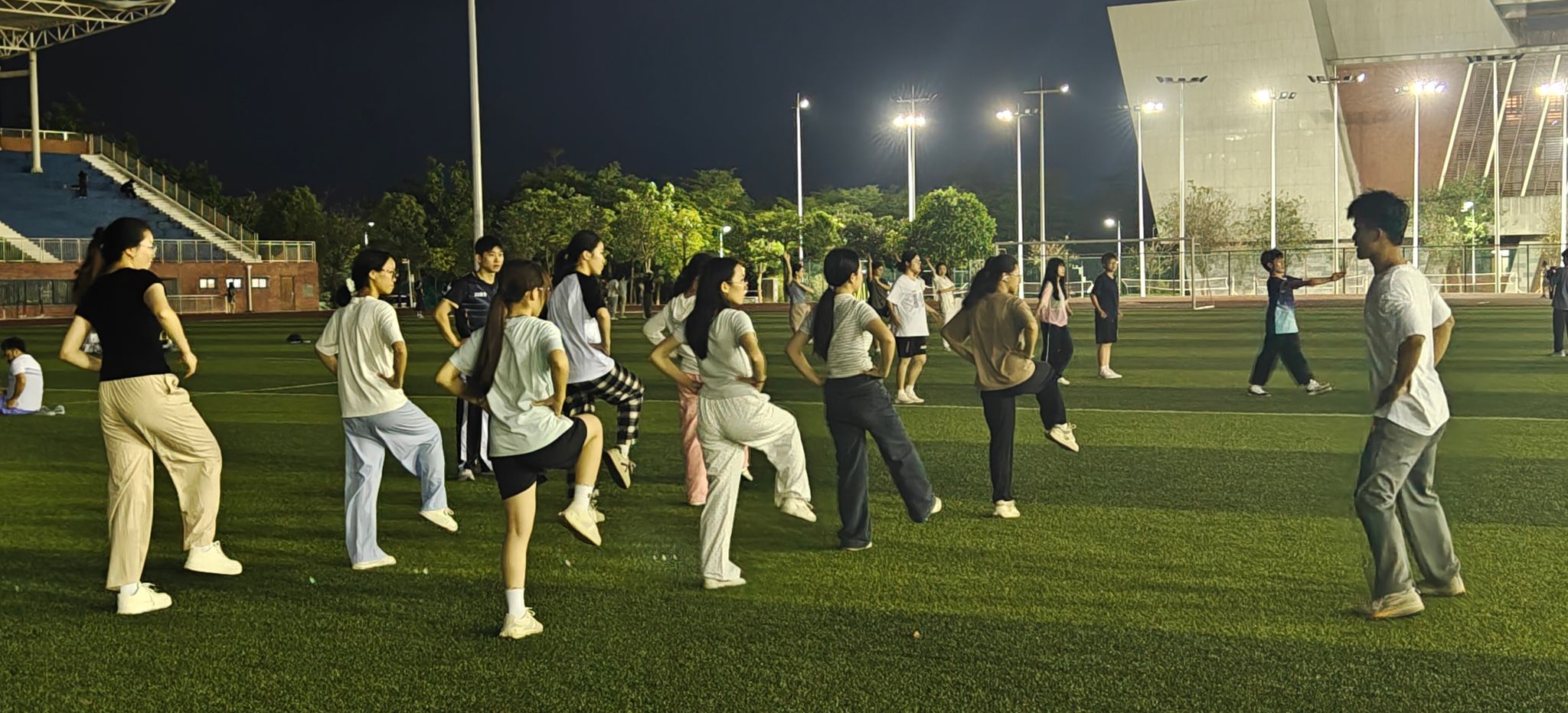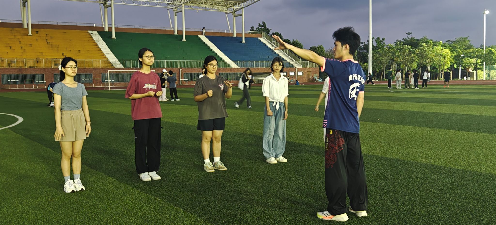 为传承中华传统武术文化,丰富在校生课余生活,近日,我校“星火跃动·青春夜练营”武术夜校第一期活动在武鸣校区松园田径场热力开营,本次活动由体育与健康学院团委和完美(中国)武术与民族传统体育协会举办。活动吸引了众多同学热情参与,第一期活动到场人数超过100人。