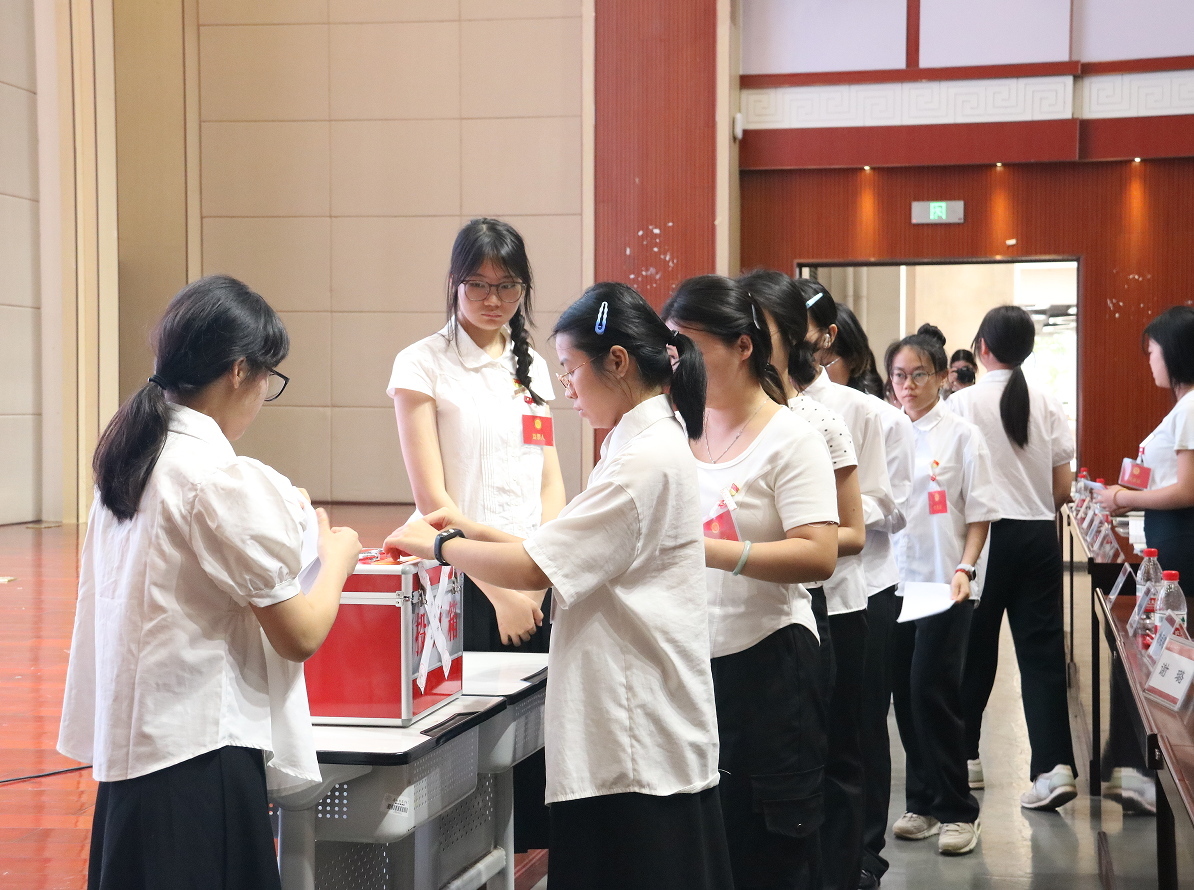 接下来的选举环节,经过与会代表投票、记票人员进行选票统计以及总监票人宣布选票结果等一系列环节后,选举产生了共青团南宁师范大学初等教育学院第三届委员会委员。大会最后,学院共青团第三届委员会委员唐丽婷宣读大会倡议书,倡议全体同学紧跟时代步伐,努力奋斗;学院学工办辅导员李露露致闭幕词,总结大会主要任务的完成情况。本次大会经过全体代表的共同努力,有序完成了大会的各项议程,伴随着高亢的团歌,大会在热烈的掌声中顺利闭幕。