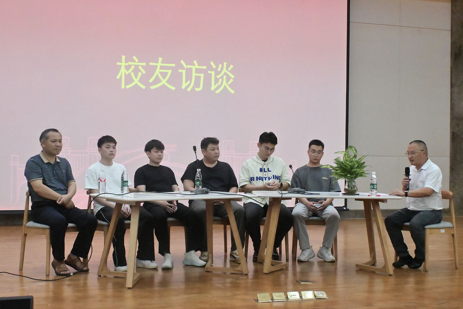 学院党委黄宇副书记、物流工程系欧阳老师与四位校友围绕职业成长展开交流。校友们分享了从校园到职场的经验,强调主动学习、适应变化和做好职业规划的重要性。现场学生积极互动,就实习与职业发展问题提问交流。
