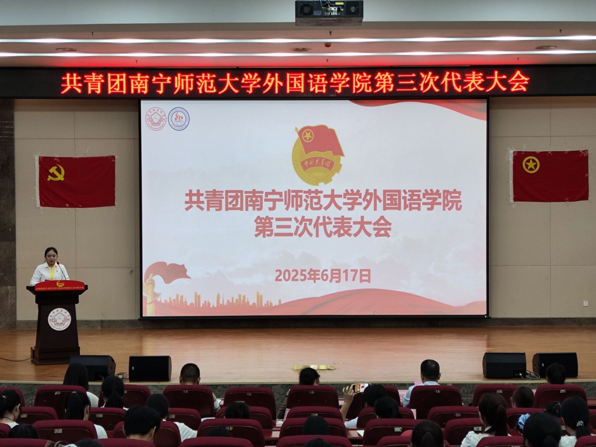 6月17日,外国语学院团委于武鸣图书馆报告厅隆重举行共青团南宁师范大学外国语学院第三次代表大会。校团委书记区丽媛、外国语学院党委书记苏华、党委副书记刘晖晖出席本次会议。参会人员还有学工办各位老师、各委员会委员、各二级学院代表以及各班学生代表。