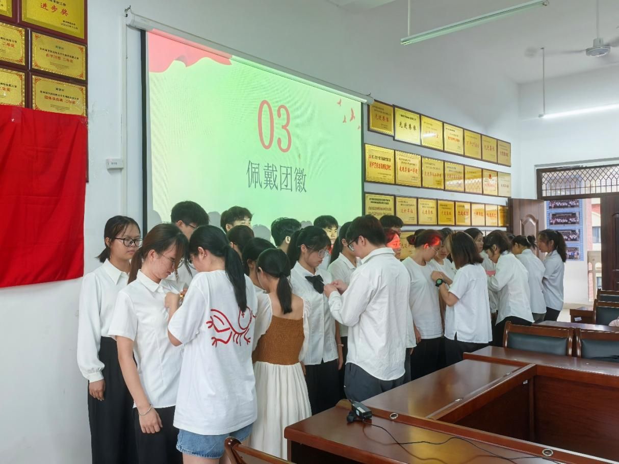 入团仪式在庄严的国歌中拉开序幕。主持人宣读了新发展团员名单,团干为40名新团员佩戴团徽。在主持人的带领下,全体新发展团员高举右拳,庄严宣誓,铿锵有力的誓言回荡在会议室内,字字句句展现出他们对共青团的无限向往与坚定决心。张慧荣对新发展的团员提出殷切期望。她指出,共青团员不仅是一份荣誉,更是一份责任。希望新团员们珍惜团员身份,一是要坚定信念,永远听党话、跟党走,做有理想的新时代青年;二是要勤奋学习,锤炼本领,在实践中增长才干;三是要勇担责任,以身作则,在集体中发挥模范作用。最后,全体起立凑唱团歌,入团仪式圆满结束。