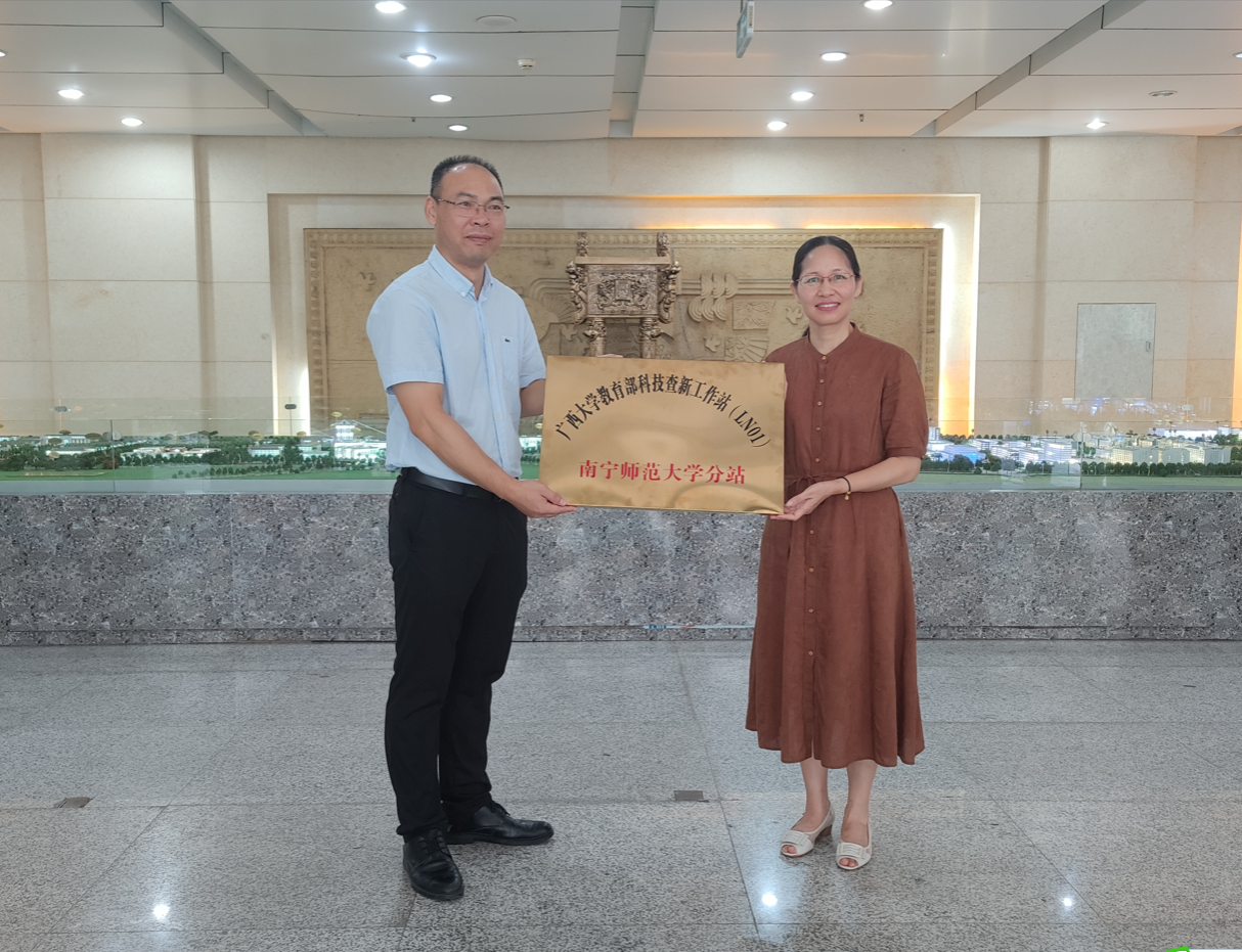 6月25日上午,广西大学教育部科技查新工作站南宁师范大学分站授牌仪式在我校明秀校区图书馆举行。广西大学图书馆馆长李家军、副馆长唐小新、科技查新工作站站长韩春华等一行五人及我校图书馆馆长叶佩珍、副馆长谭忠顶、信息咨询部部长黄春燕等参加了授牌仪式。仪式由叶佩珍馆长主持。