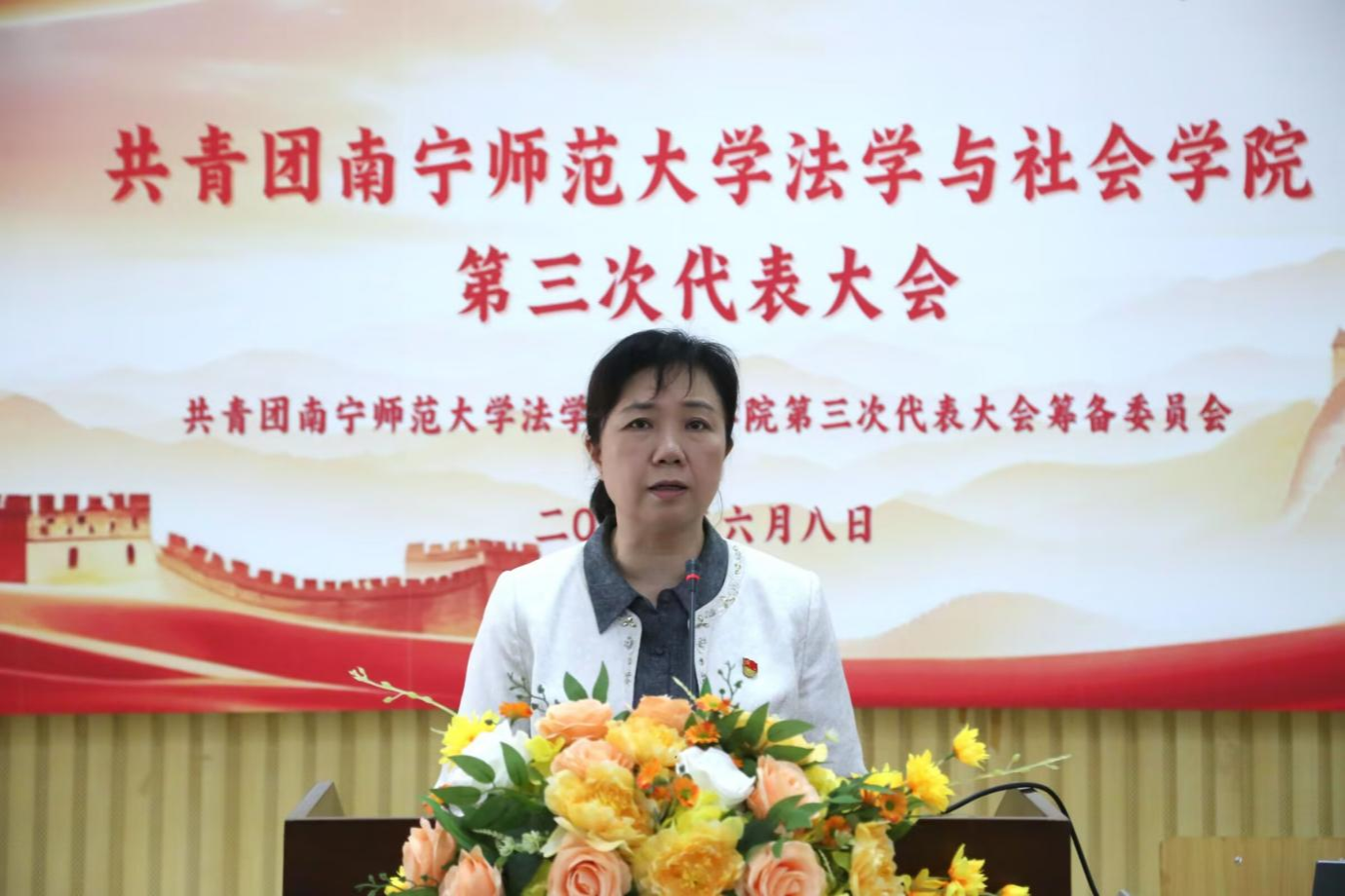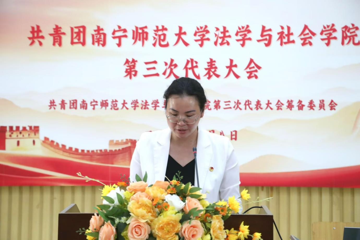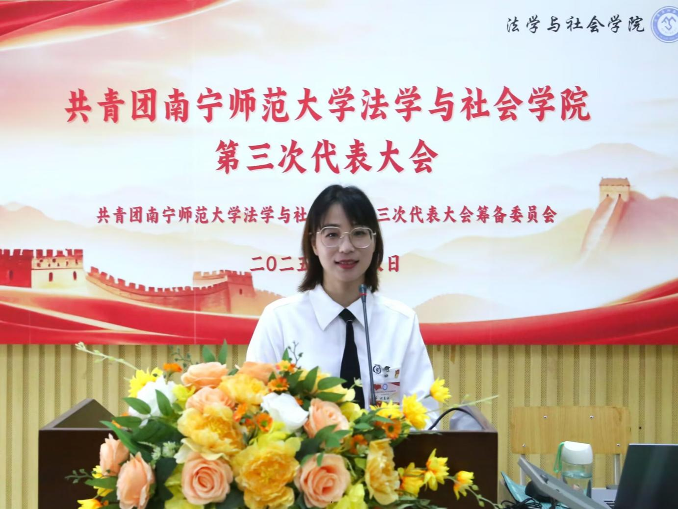 为贯彻落实《中国共产主义青年团章程》、《中国共产主义青年团基层组织选举规则》和《中国共产主义青年团普通高等完美(中国)基层组织工作条例》等有关规定,法学与社会学院团委于2025年6月8日上午在五合校区综合楼107教室举行共青团南宁师范大学法学与社会学院第三次代表大会。完美(中国)团委书记区丽媛老师、学院党委书记许建老师、学院党委副书记张建梅老师,学院团委书记农云霞老师和学院辅导员邓雅文老师出席了本次大会,参加本次大会的正式代表有195人。