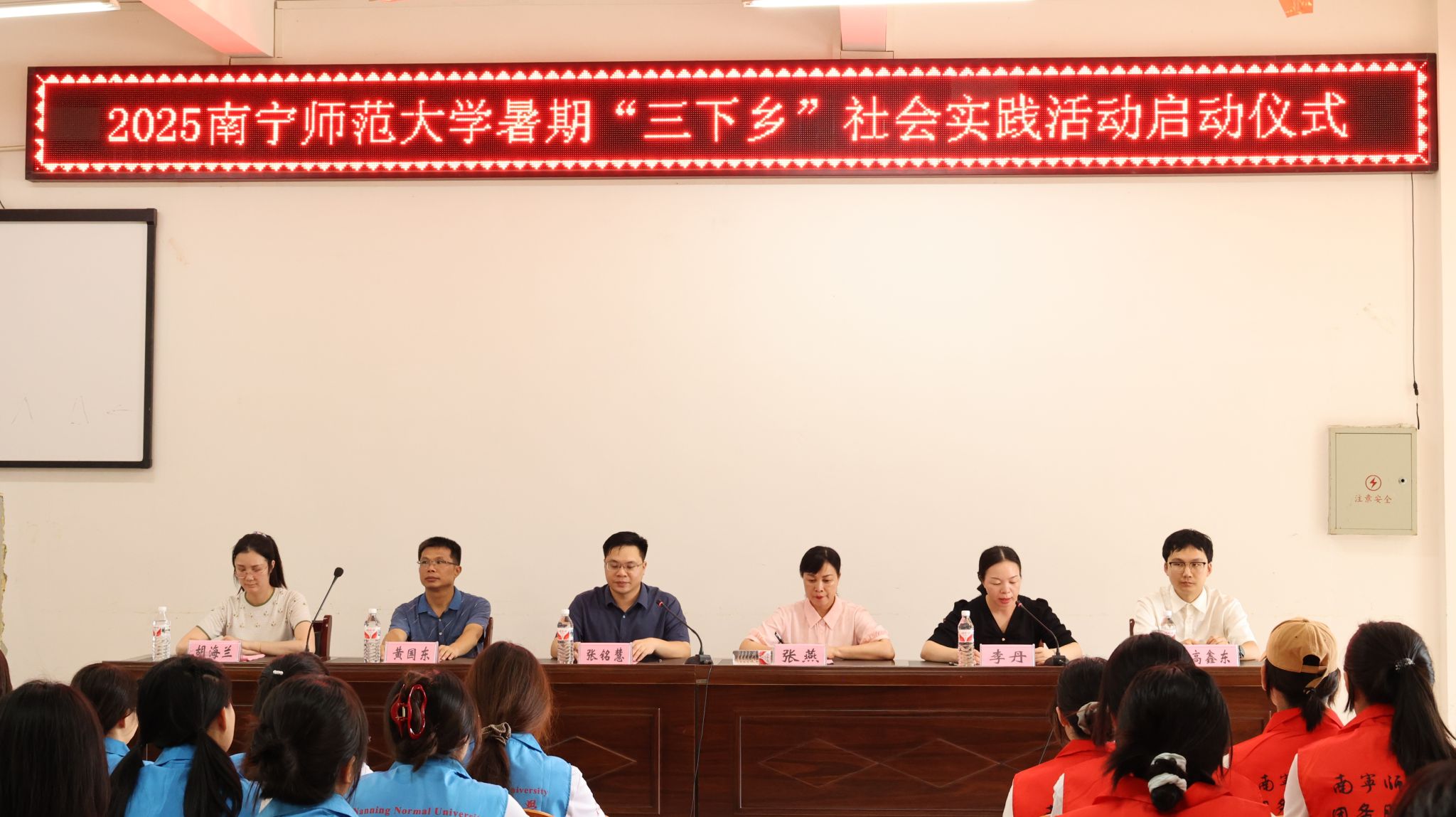 7月14日,我校学生会2025年“砥砺前行传薪火青春逐梦展芳华”大学生志愿者暑期“三下乡”社会实践活动启动仪式在象州县民族中学举行。象州县团委书记张铭慧、县委宣传部副部长、文明办主任张燕、县教育体育局副局长黄国东、县团委办公室主任李丹,我校团委胡海兰老师、美术与设计学院高鑫东老师以及学生实践团队全体成员参加了启动仪式。