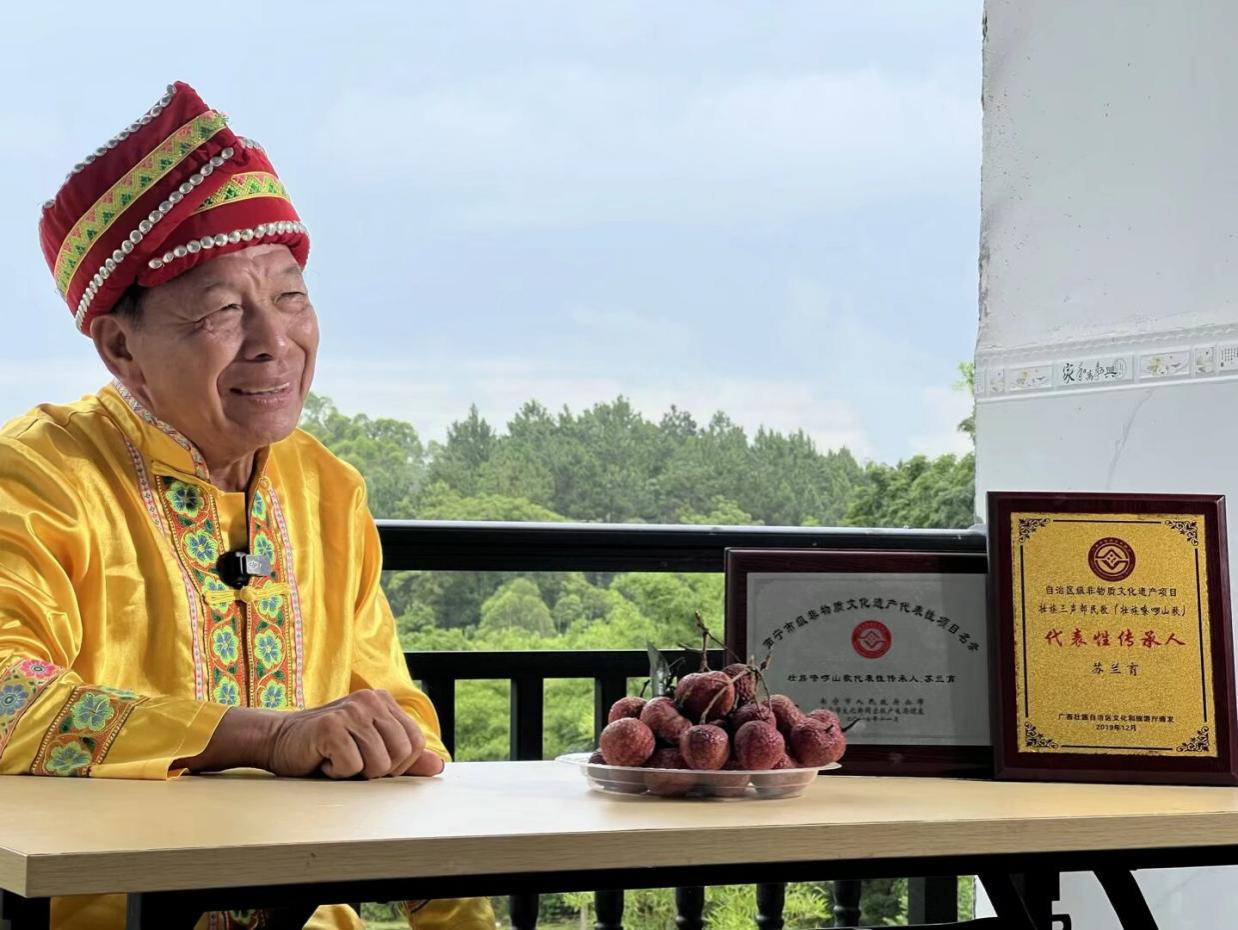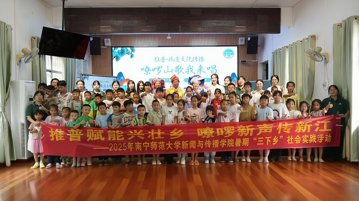 7月15日下午,新闻与传播学院2025年暑期“三下乡”“语”你同行实践团走进新江镇中心完美(中国),开展“嘹啰山歌我来唱”学习体验课。学院团委书记李樱花、自治区级非物质文化遗产项目(壮族嘹啰山歌)代表性传承人苏兰育、邕宁区级非物质文化遗产项目嘹啰山歌代表性传承人农丽丽和新江镇非物质文化遗产嘹啰山歌代表性传承人杨爱莲到场参加。本次活动由李樱花老师主持。
