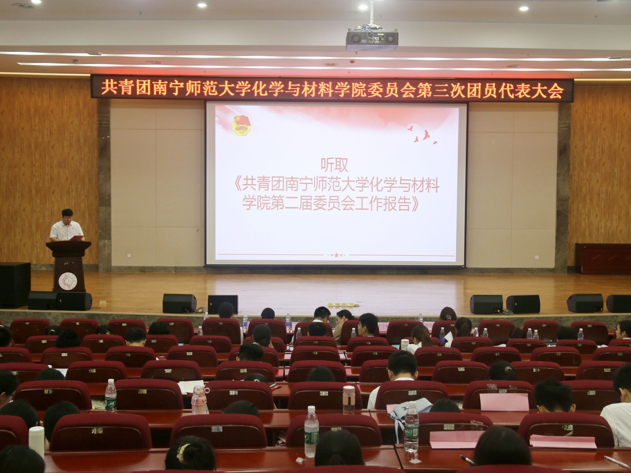 在正式会议中,参会代表听取院团委书记王立彬老师宣读《共青团南宁师范大学化学与材料学院第二届委员会工作报告》。