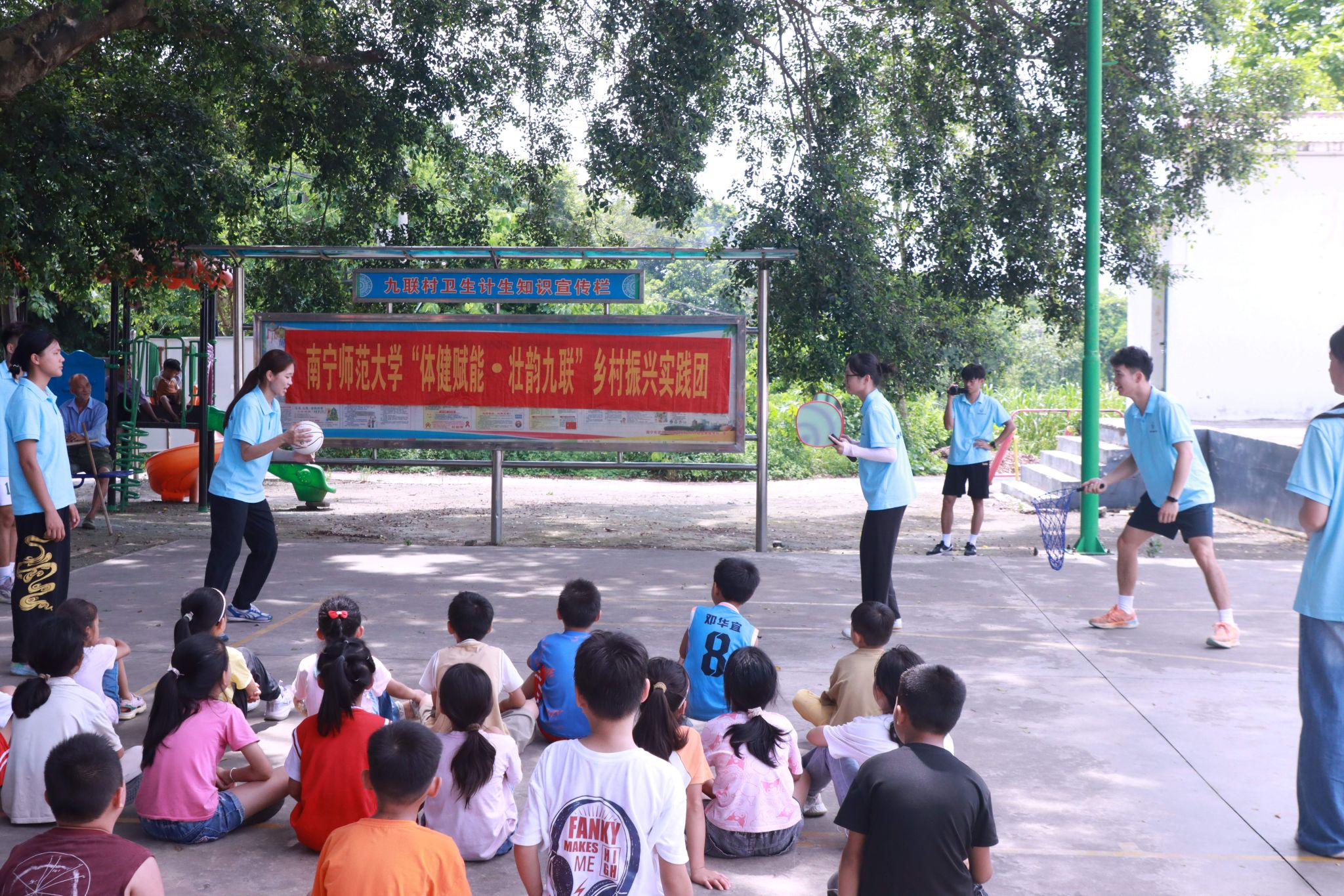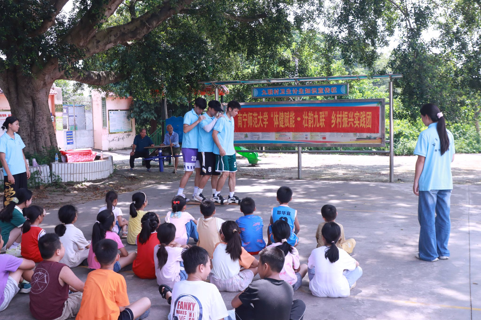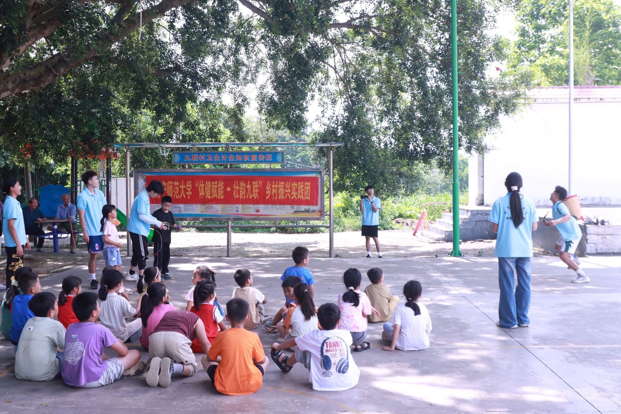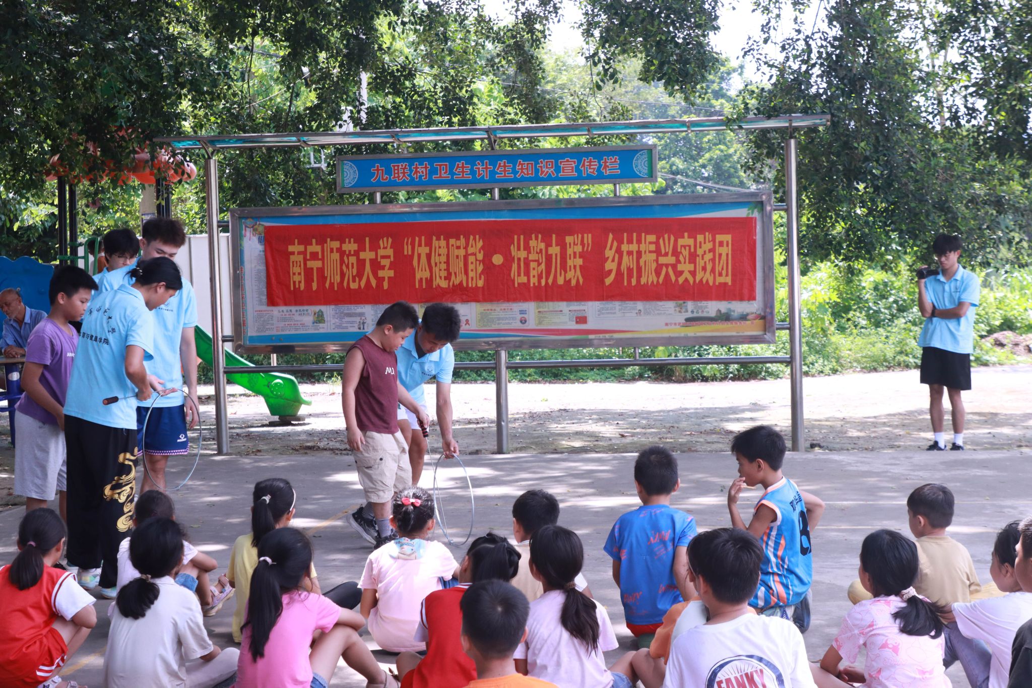 为弘扬民族传统文化,科普和推广少数民族传统体育项目,进一步丰富乡村小学生体育活动,7月16日,体育与健康学院“体健赋能·壮韵九联”暑期实践团在南宁市武鸣区九联村开展少数民族传统体育科普课堂。此次科普课堂由实践团队员吴青青主持,实践团队员依次展示各项目,九联村小学生参加。