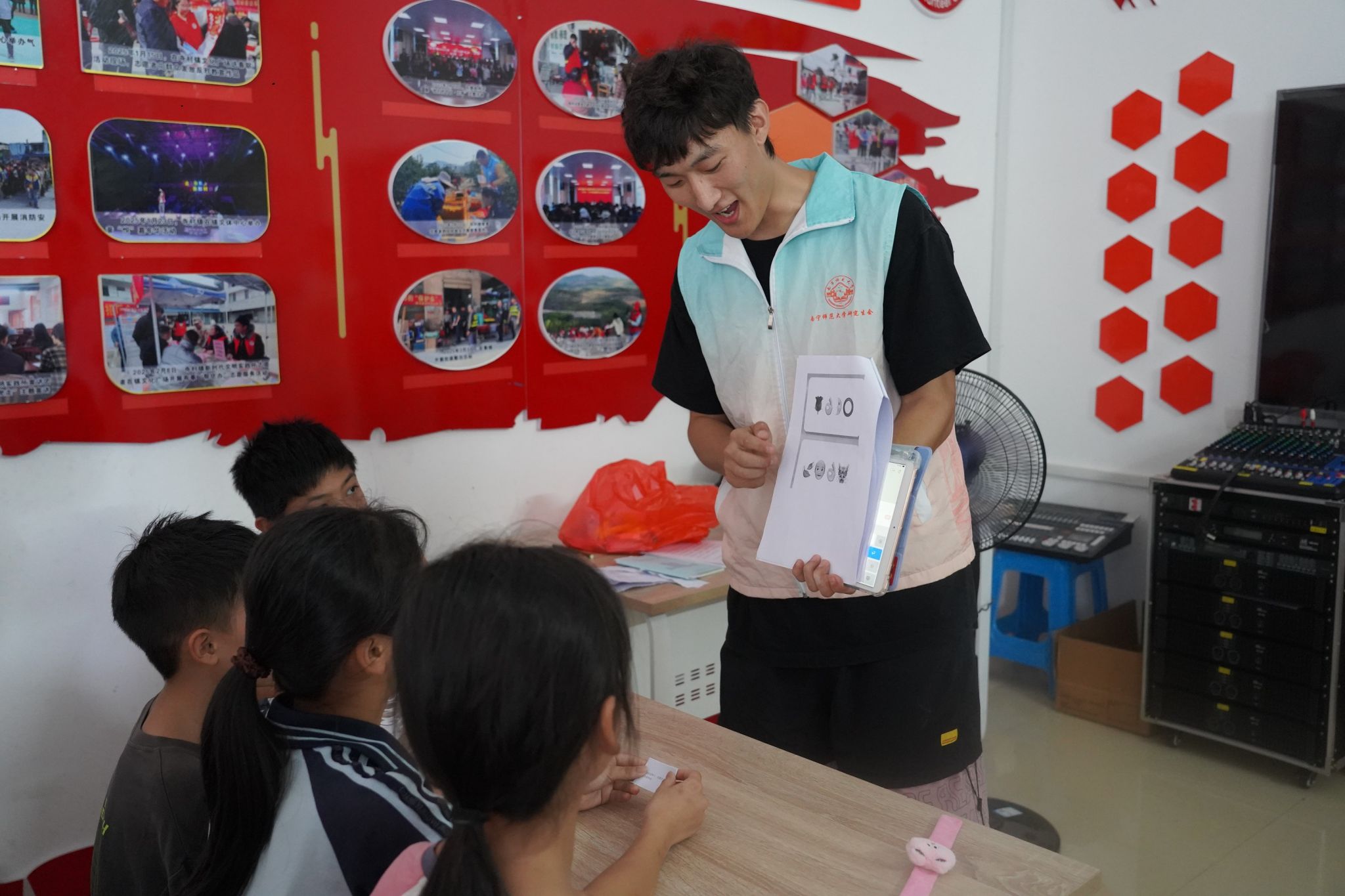 (对当地学生进行普通话教学)