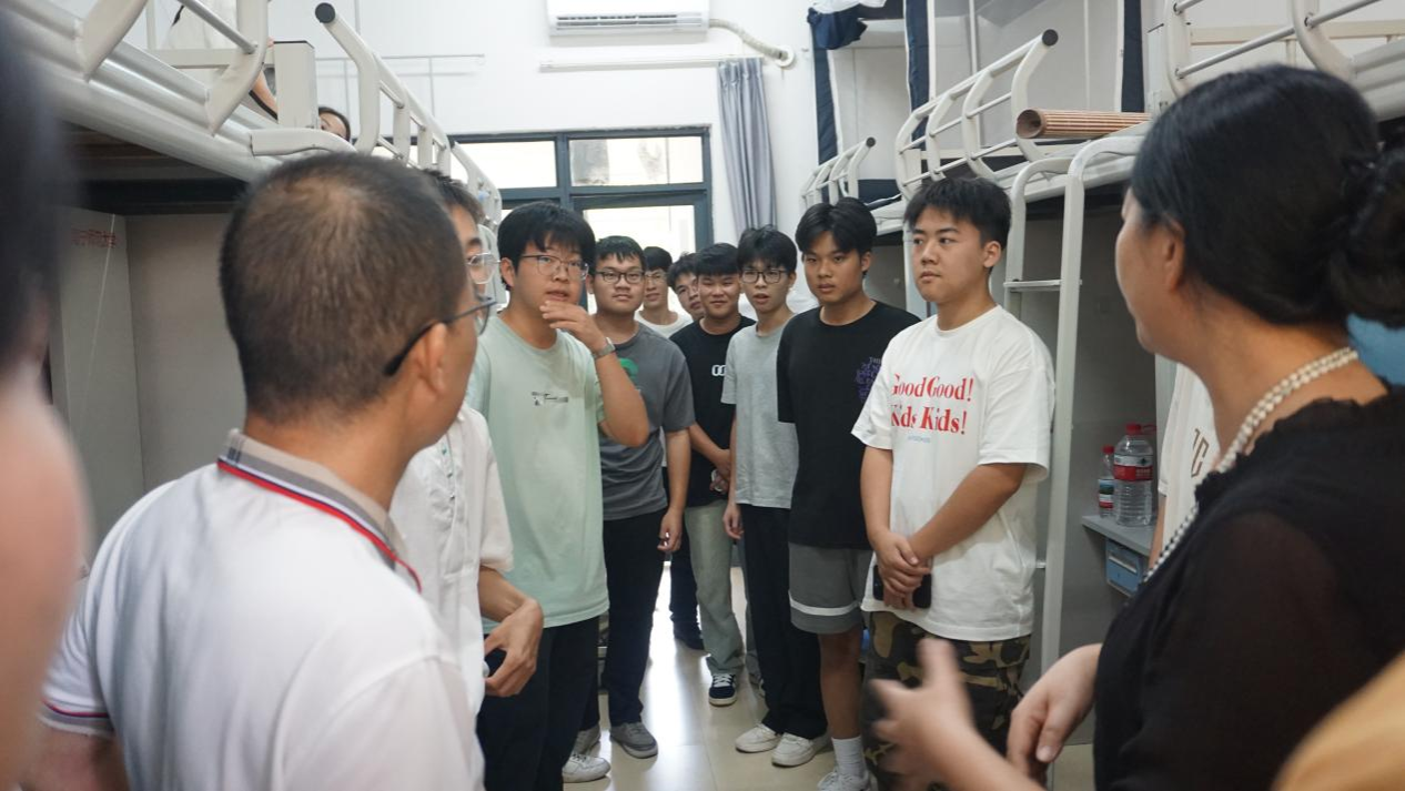 走访过程中,学院领导向新生们表示热烈欢迎,细致询问每位同学所需,亲切叮嘱大家若在生活、学习、工作等方面遇到困难,第一时间向老师反映。此外,向新生介绍了宿舍的设施配置与管理服务,鼓励新生尽快熟悉校园和宿舍,与同学们互帮互助、和睦相处,共同营造整洁、温馨的集体生活氛围。