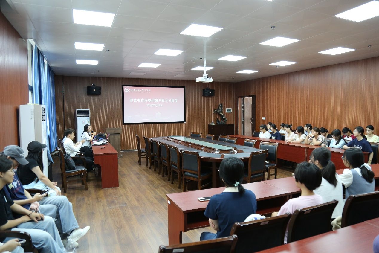为加强新生安全意识,促进心理适应,助力新生顺利开启大学生活,9月9日下午,文学院分别于文综114报告厅、理综404会议室面向汉语言文学专业与秘书学专业2025级新生组织开展“反诈教育”与“心理健康”两场主题讲座。