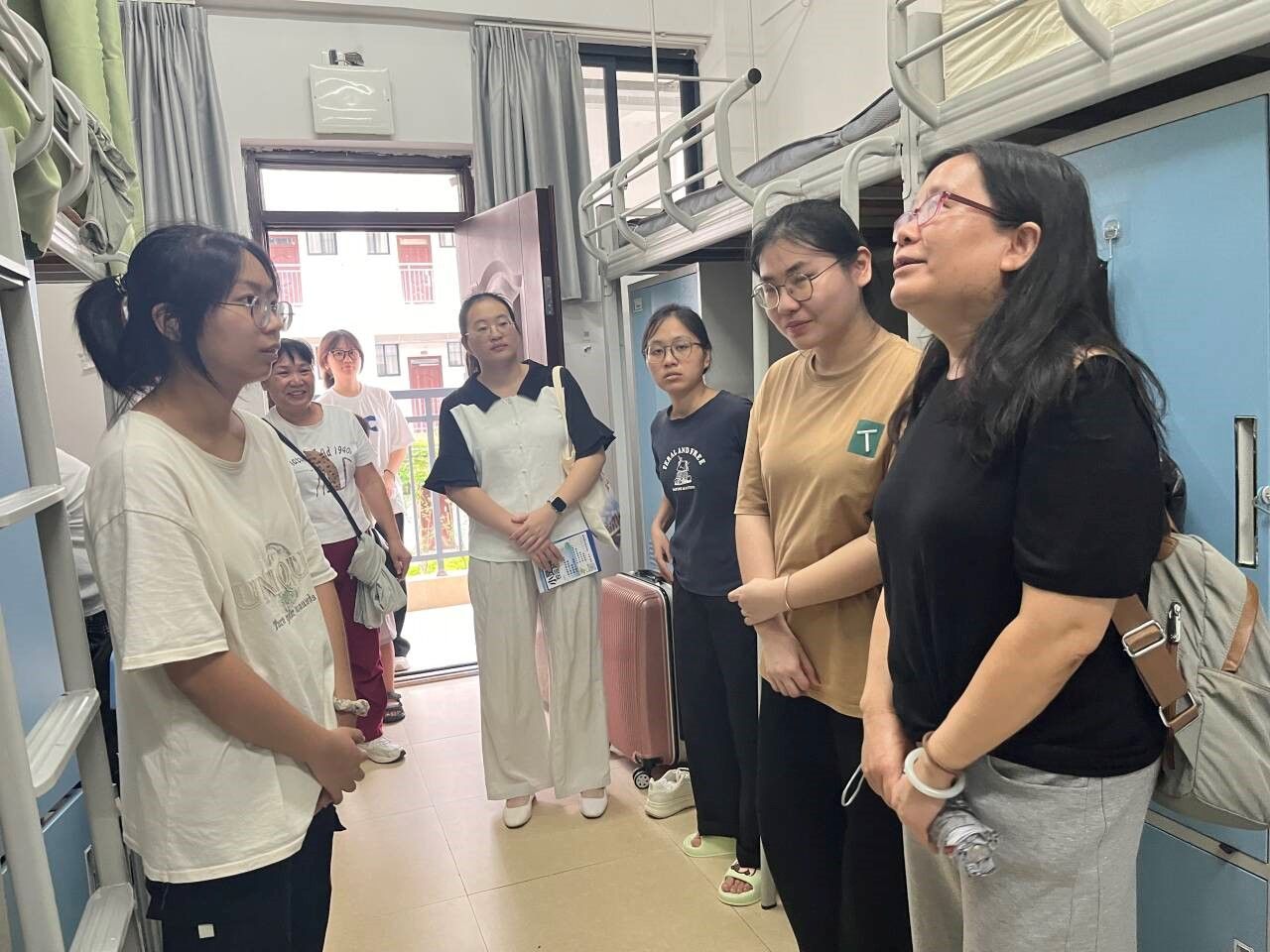 随后,全体领导老师分批走访新生宿舍,与新生交流,了解新生入学感受和需求,叮嘱学生防范诈骗、认真规划大学生活,让新生感受学院的关心和温暖。
