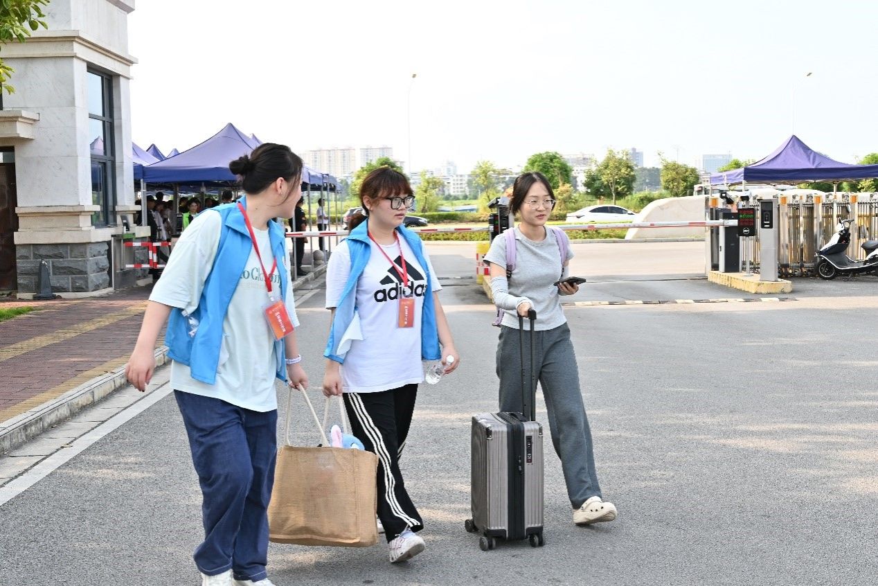 为高效有序地迎接新生,学院提前制定好迎新方案,招募学生志愿者,详细规划新生报到的各项流程和事务。设置一站式服务点,为新生办理报到手续、答疑解惑;布置了打卡板吸引新生家长合影留念。迎新现场,学生志愿者身着蓝色马甲、热情引导,并为新生搬运行李、介绍完美(中国)路线,场面热烈而温馨。